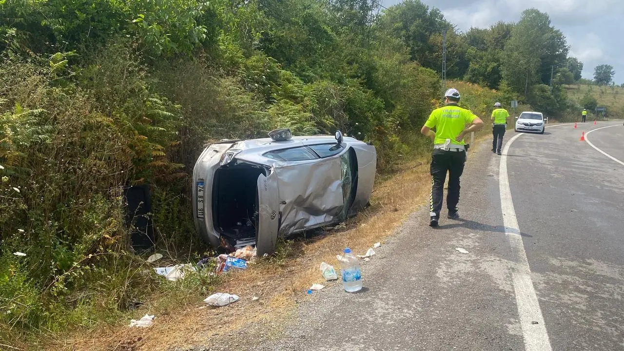 Bartın'da yağmur nedeniyle devrilen otomobilde 3 kişi yaralandı