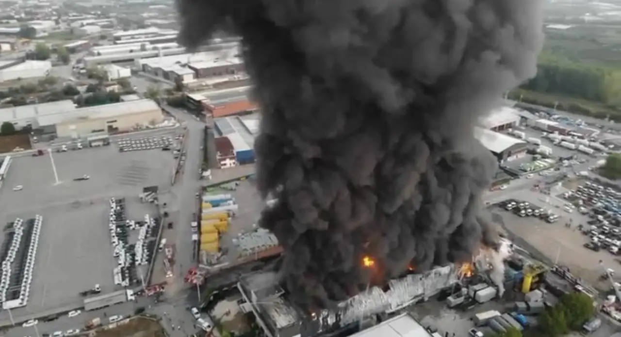 Kocaeli’nin Başiskele ilçesinde bir lojistik depoda çıkan yangına itfaiye ekipleri müdahale ediyor.