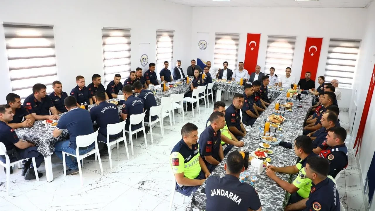 İlçe Jandarma Komutanlığında düzenlenen programa üst düzey yöneticiler katıldı. Personel ve protokol üyeleri yemekte bir araya geldi.