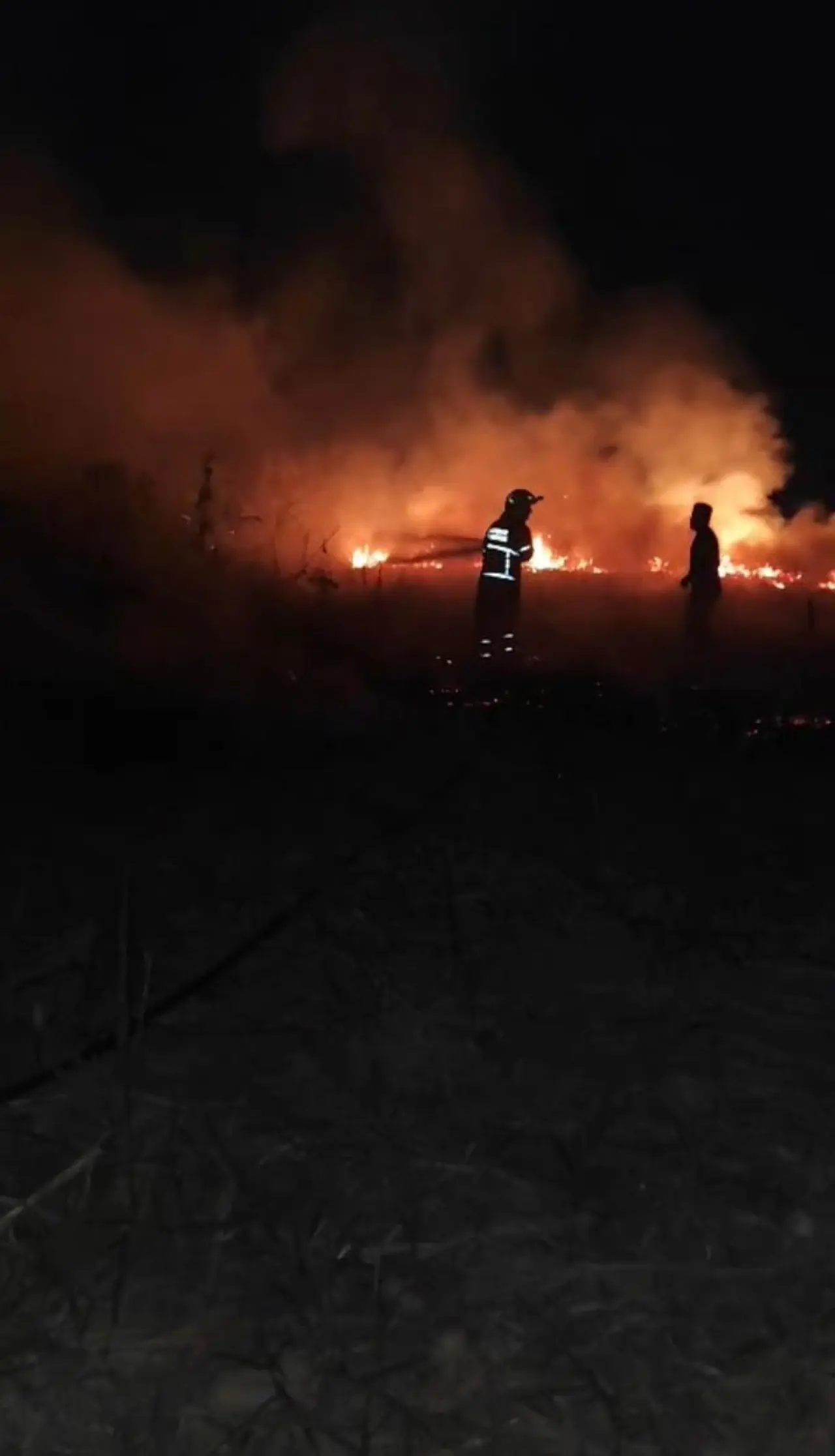 Yangın rüzgarın etkisiyle hızla yayılarak 30 dönümlük alanı etkiledi. Ekipler soğutma çalışmalarını sürdürüyor.