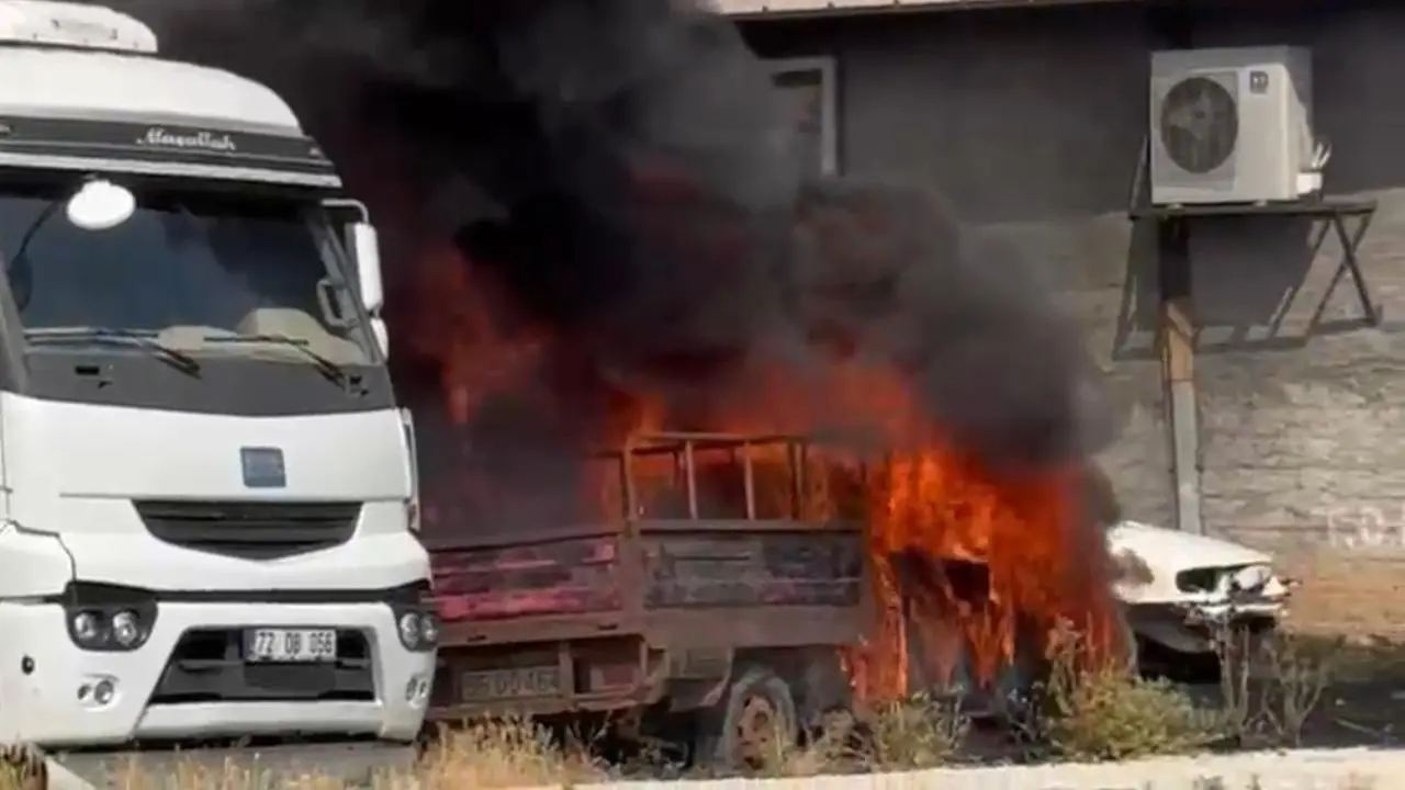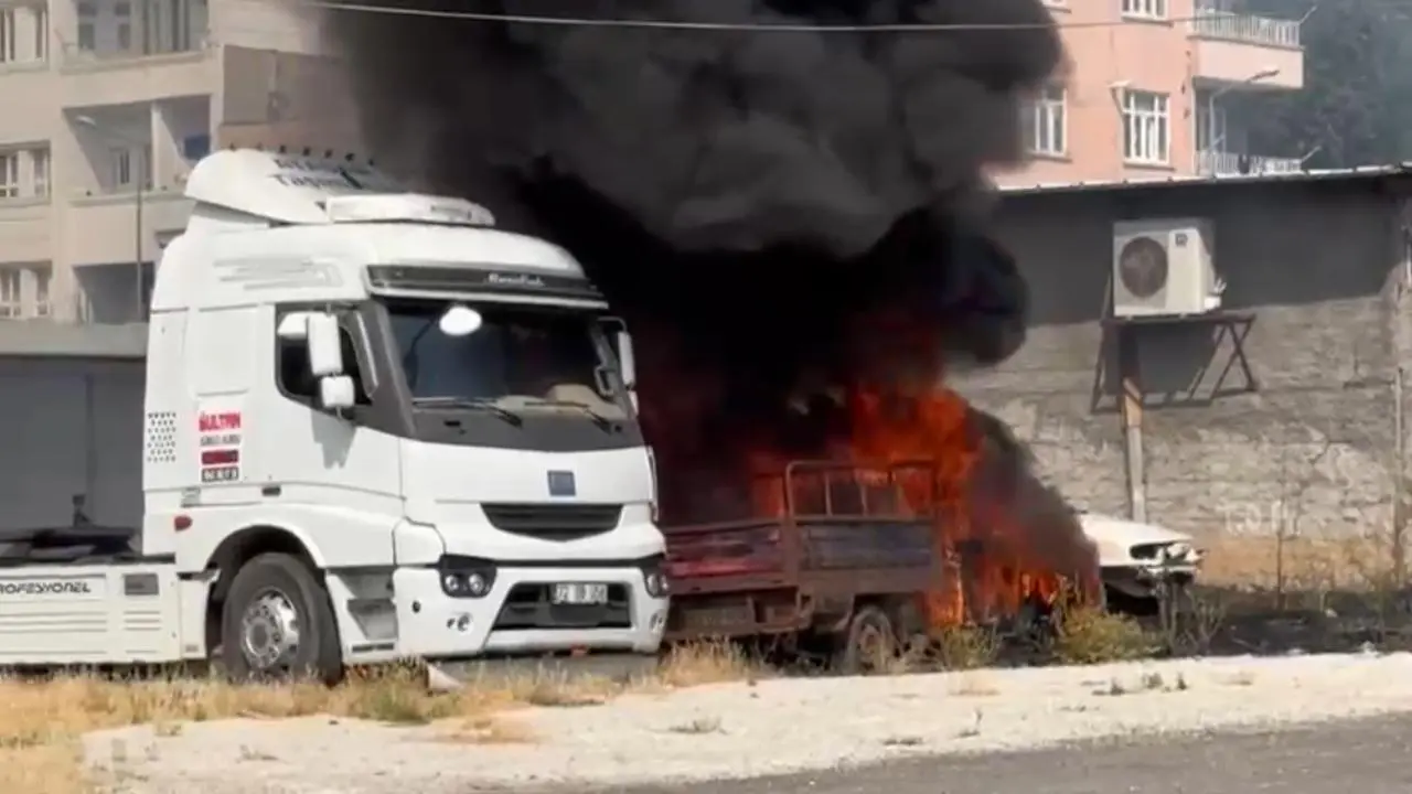 Batman'da terk edilmiş haldeki dört araç alev alarak yanarken, yangının sıçramak üzere olduğu bir tır kurtarıldı.