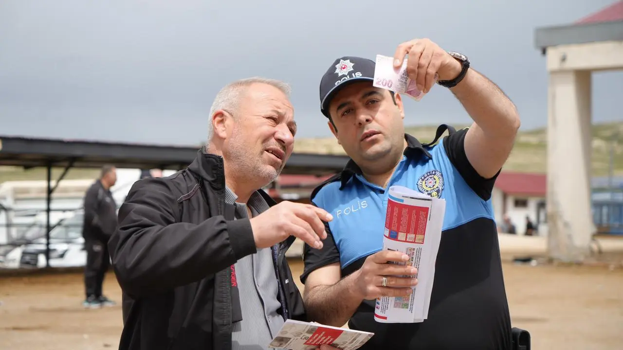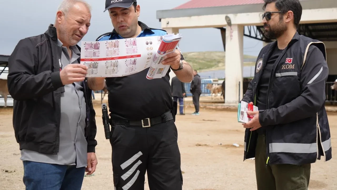 Bayburt polisi, kurban pazarında vatandaşları sahte para ve dolandırıcılık konusunda uyararak bilgilendirme çalışması gerçekleştirdi.