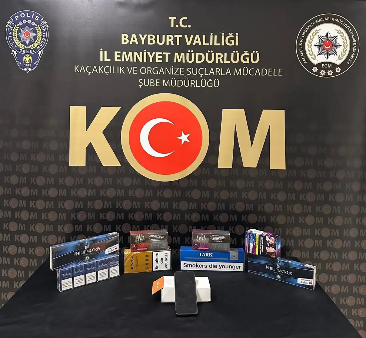 Bayburt'ta düzenlenen operasyonda kaçak tütün ve alkol ürünleri ele geçirildi.
