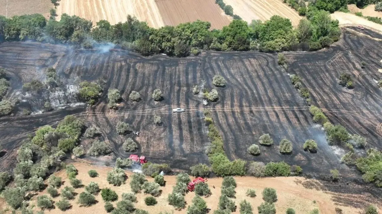 Akpınar ve Türkmenli köyü arasındaki tarım arazisinde saat 11.32'de yangın başladı. Bölge sakinleri durumu hemen yetkililere bildirdi.
