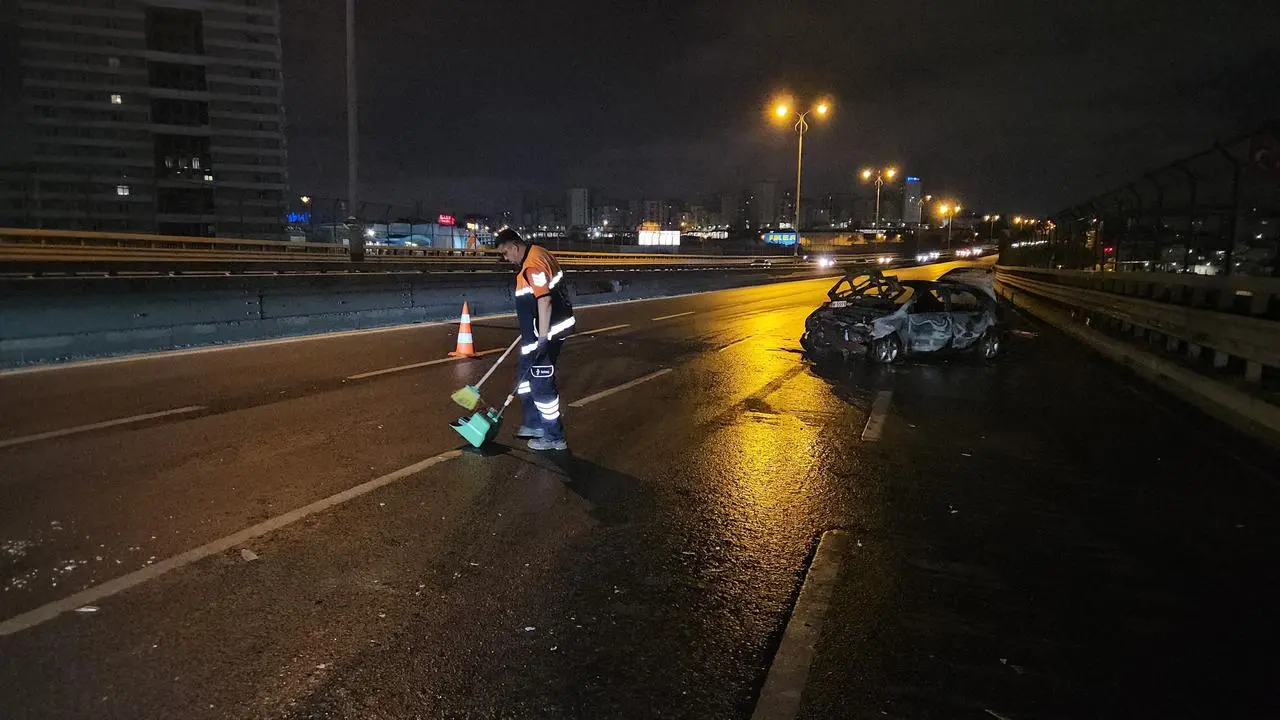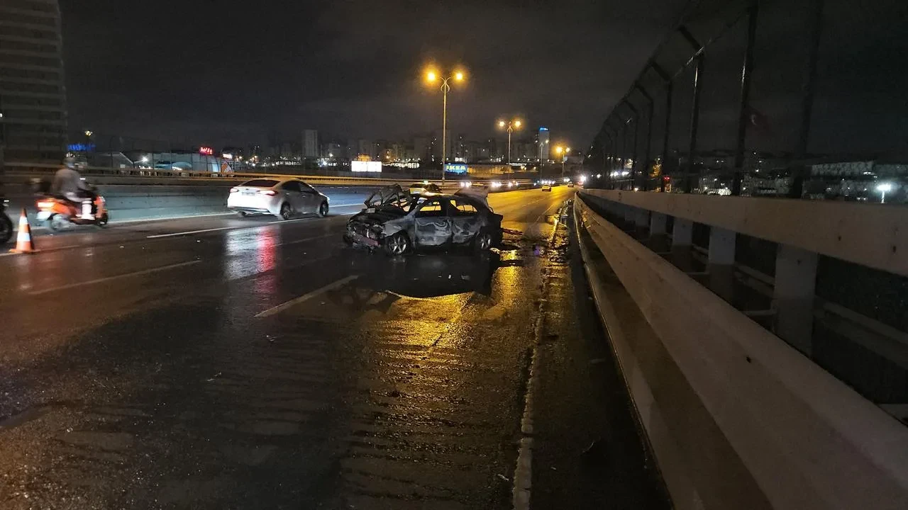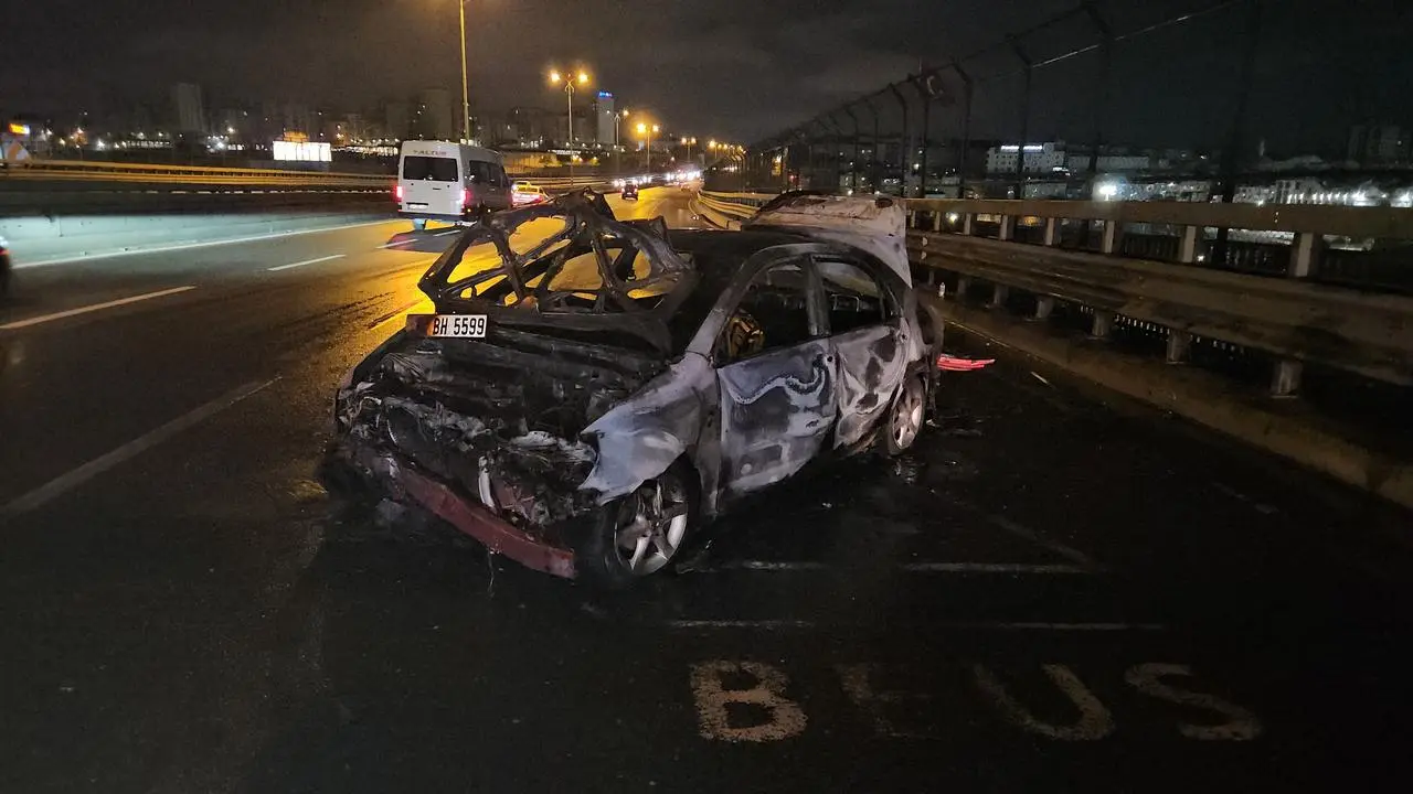 Bariyerlere çarpan 34 BH 5599 plakalı araç bilinmeyen nedenle alev aldı. Sürücü kendi imkanlarıyla araçtan çıkmayı başardı.