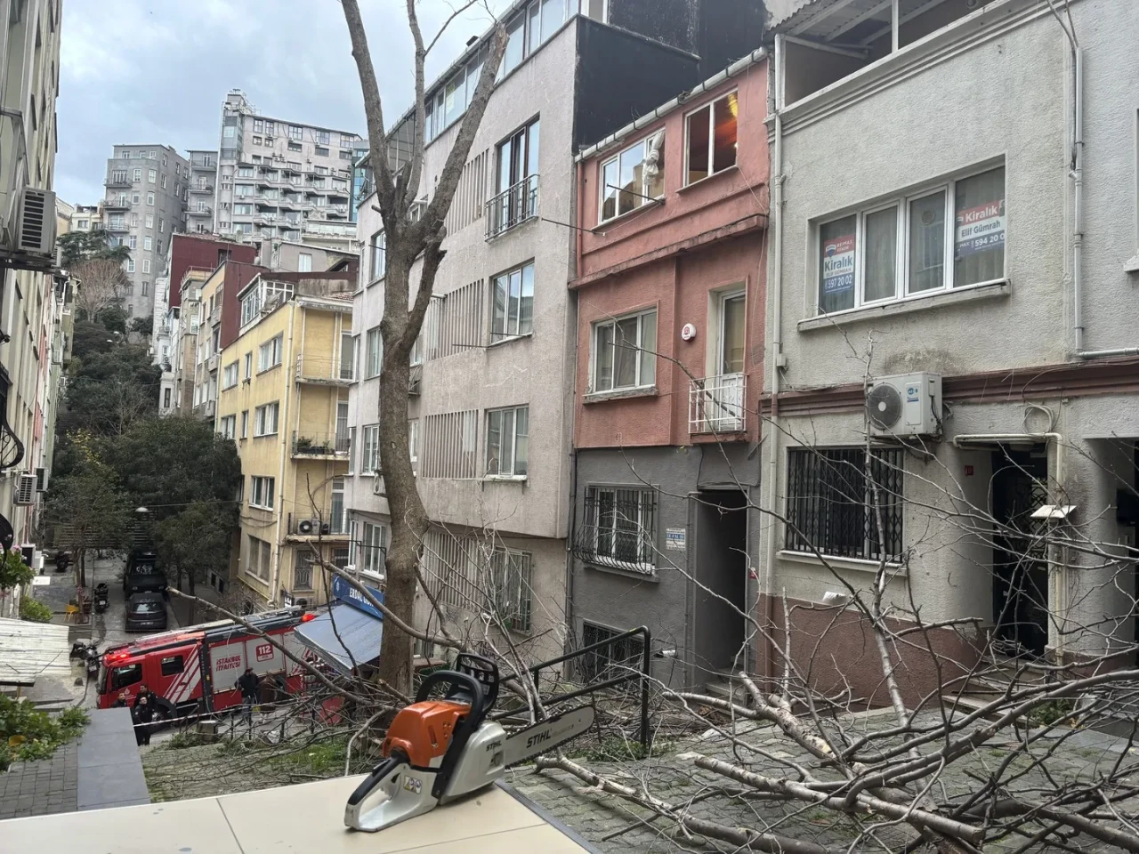 Beyoğlu'nda şiddetli rüzgarın etkisiyle kırılan ağaç dalları bir binanın üzerine düştü.