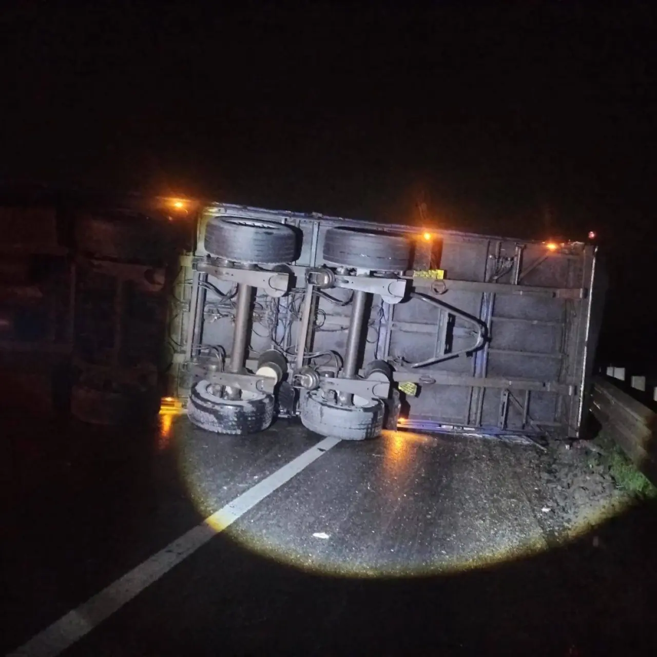 Dün gece meydana gelen kazada sürücü direksiyon hakimiyetini kaybetti. Tırın devrilmesi sonucu yol trafiğe kapatıldı.