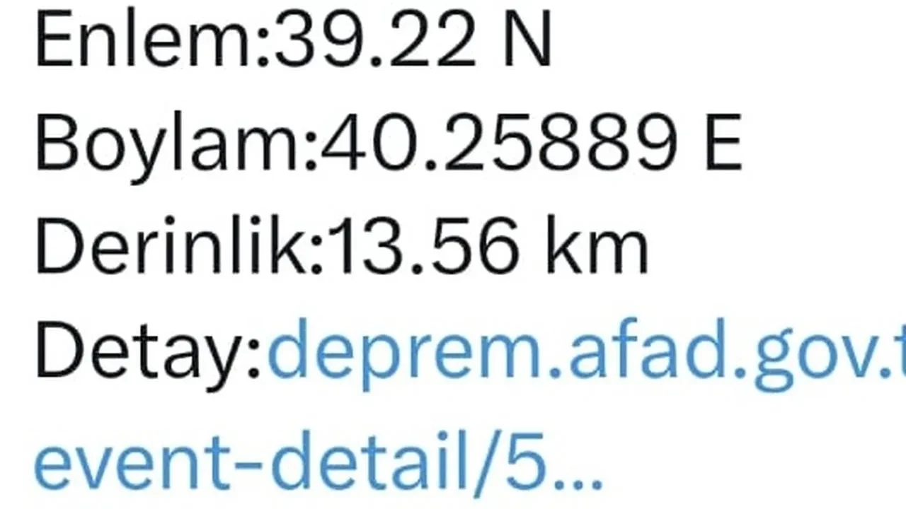 AFAD, depremin saat 20.14'te meydana geldiğini duyurdu. Sarsıntının merkez üssü Kiğı ilçesi olarak belirlendi.