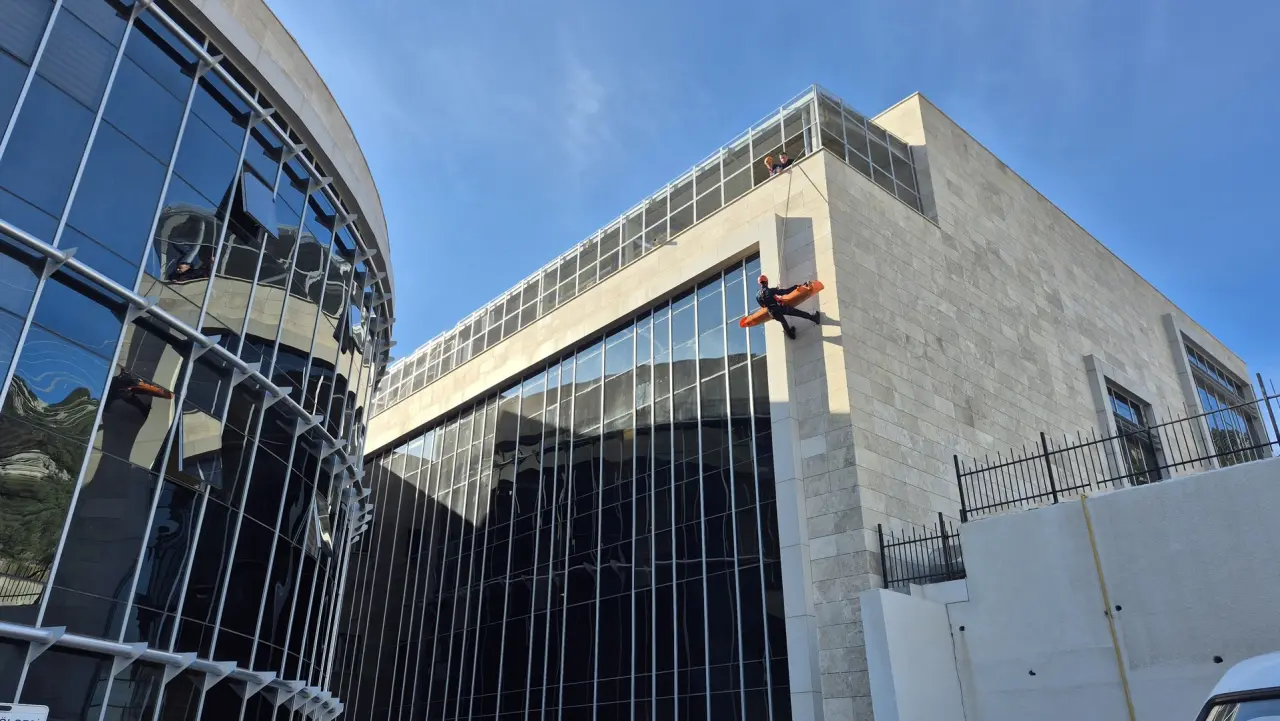 Tatbikatta çatıda mahsur kalan bir yaralı için özel operasyon yapıldı. Halat destekli sistemle yaralı güvenle indirilerek ambulansa teslim edildi.