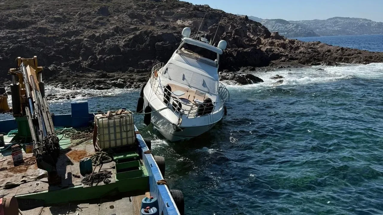 Yalıkavak açıklarında seyreden 22 metrelik motoryat, arıza sonrası kontrolünü kaybetti. İki kişinin bulunduğu tekne, kayalıklara çarparak durdu.