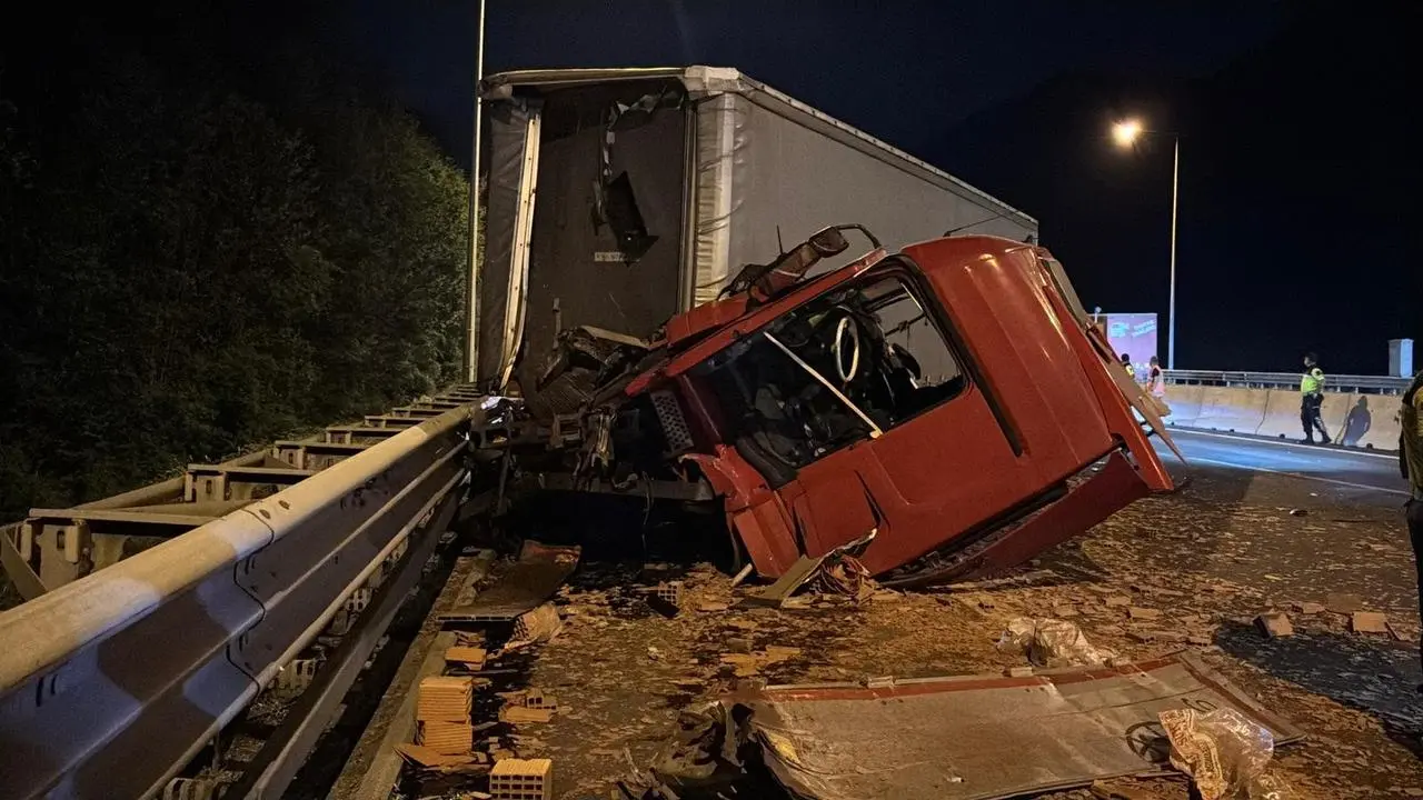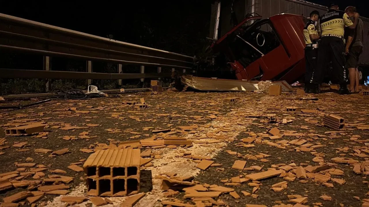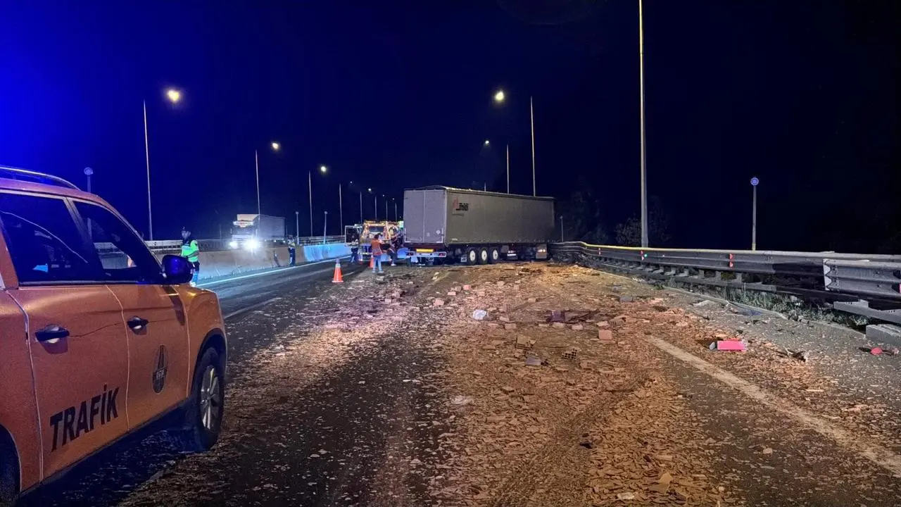 Çarpışma sonrası otoyola saçılan tuğlalar trafiği tek şeride düşürdü. Sürücülerden yaralanan olmadı, sağlık ekipleri kontrol yaptı.