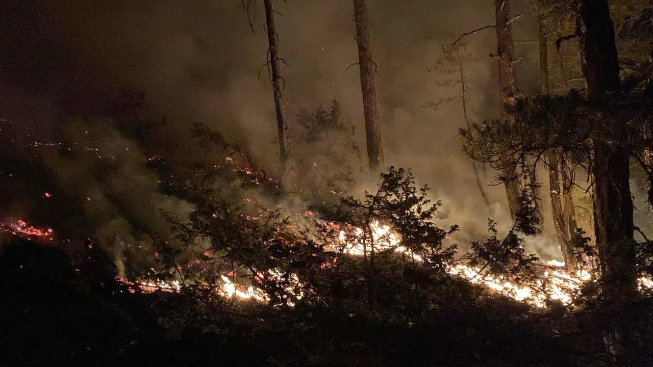 Ekipler ve köylüler yangını söndürmek için yoğun çaba gösteriyor. Hava karardığı için helikopterler müdahaleyi durdurdu, karadan çalışmalar devam ediyor.