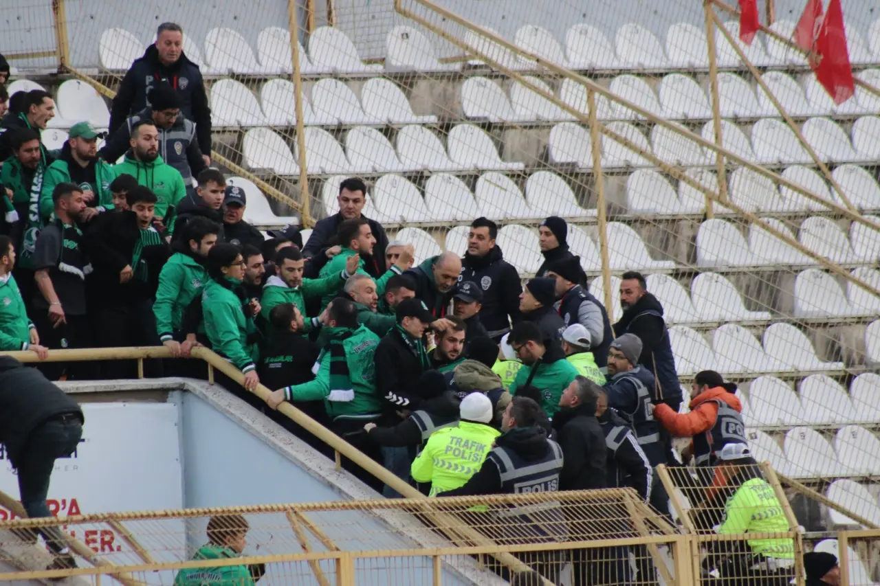 Trendyol 1. Lig’in 23. haftasında Boluspor-Sakaryaspor maçında tribünden atlayan 2 taraftar kelepçelendi.