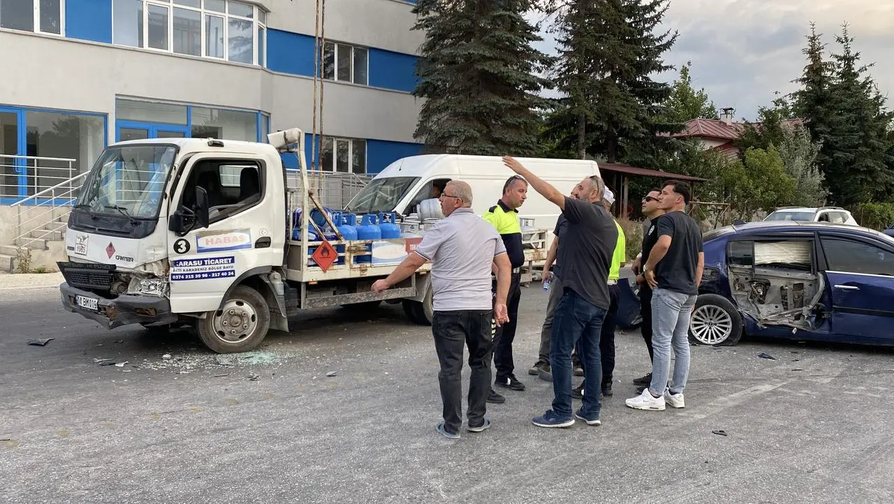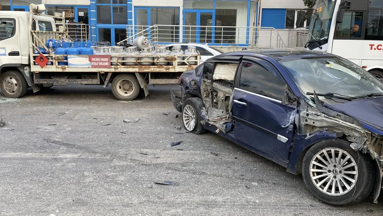 Kaza, Bolu-Mudurnu kara yolundaki ışıklı kavşakta meydana geldi. Minibüs ile otomobilin çarpışması sonucu otomobil tüp yüklü kamyona çarptı.