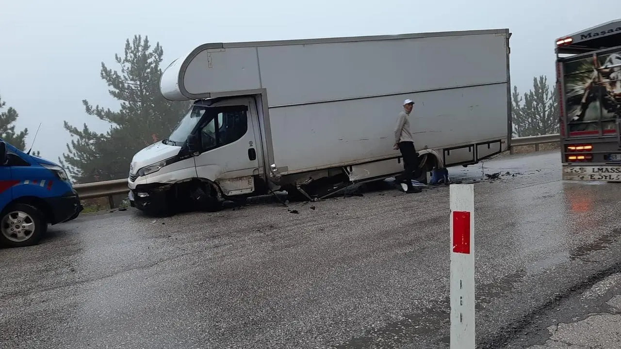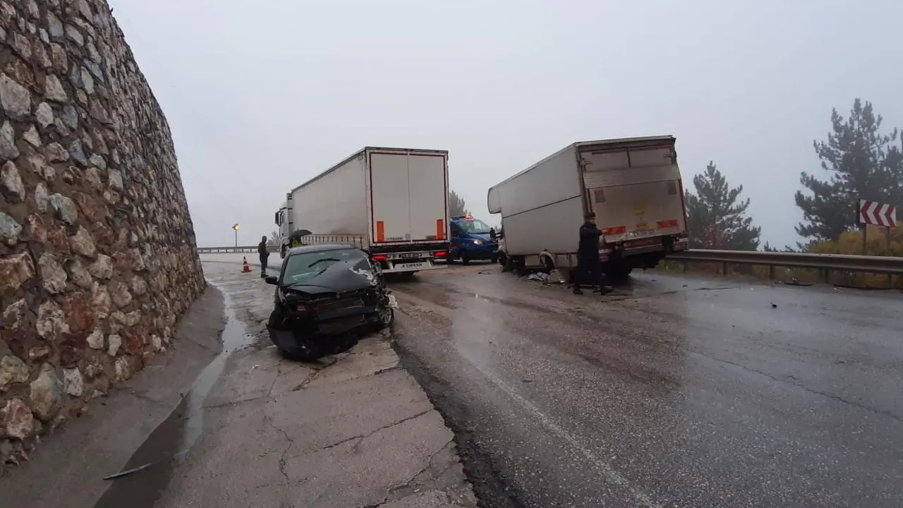 Bolu'da yağmur nedeniyle kayganlaşan yolda otomobil ile karavan çarpıştı, kazada otomobil sürücüsü hafif yaralandı.