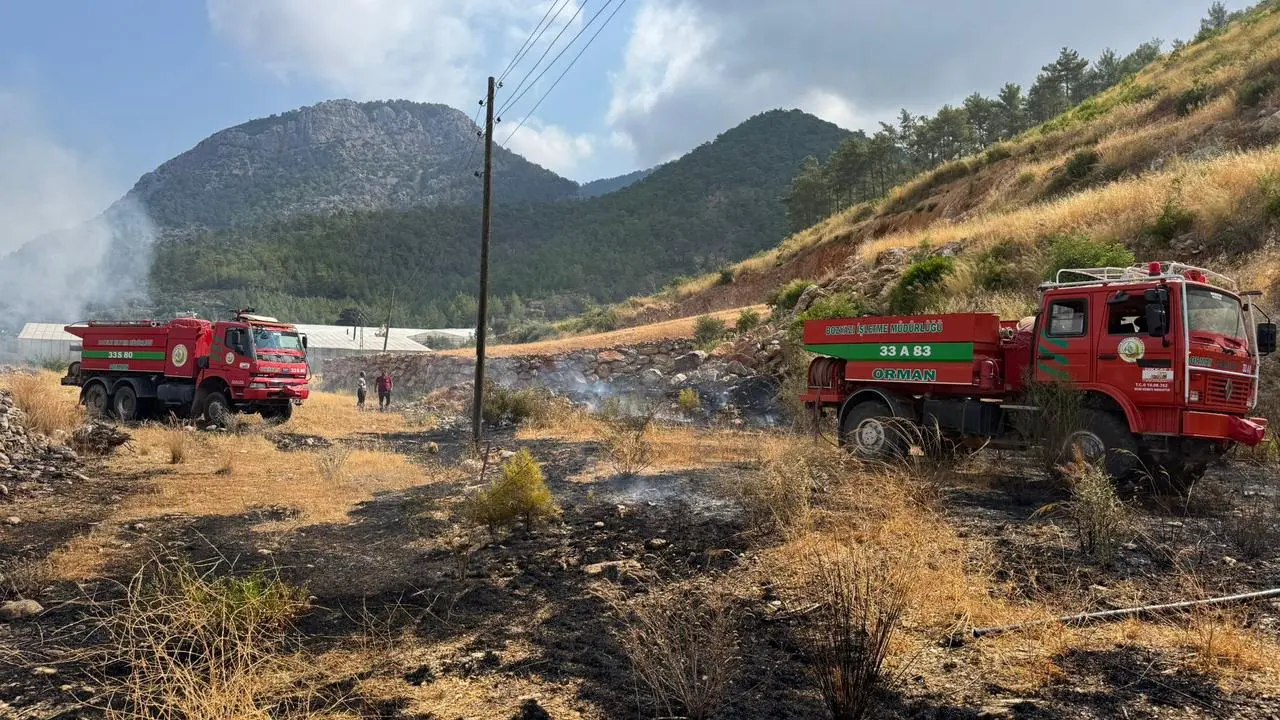 Mersin'in Bozyazı ilçesinde çıkan yangın, ekiplerin hızlı müdahalesiyle ormana sıçramadan kontrol altına alındı.