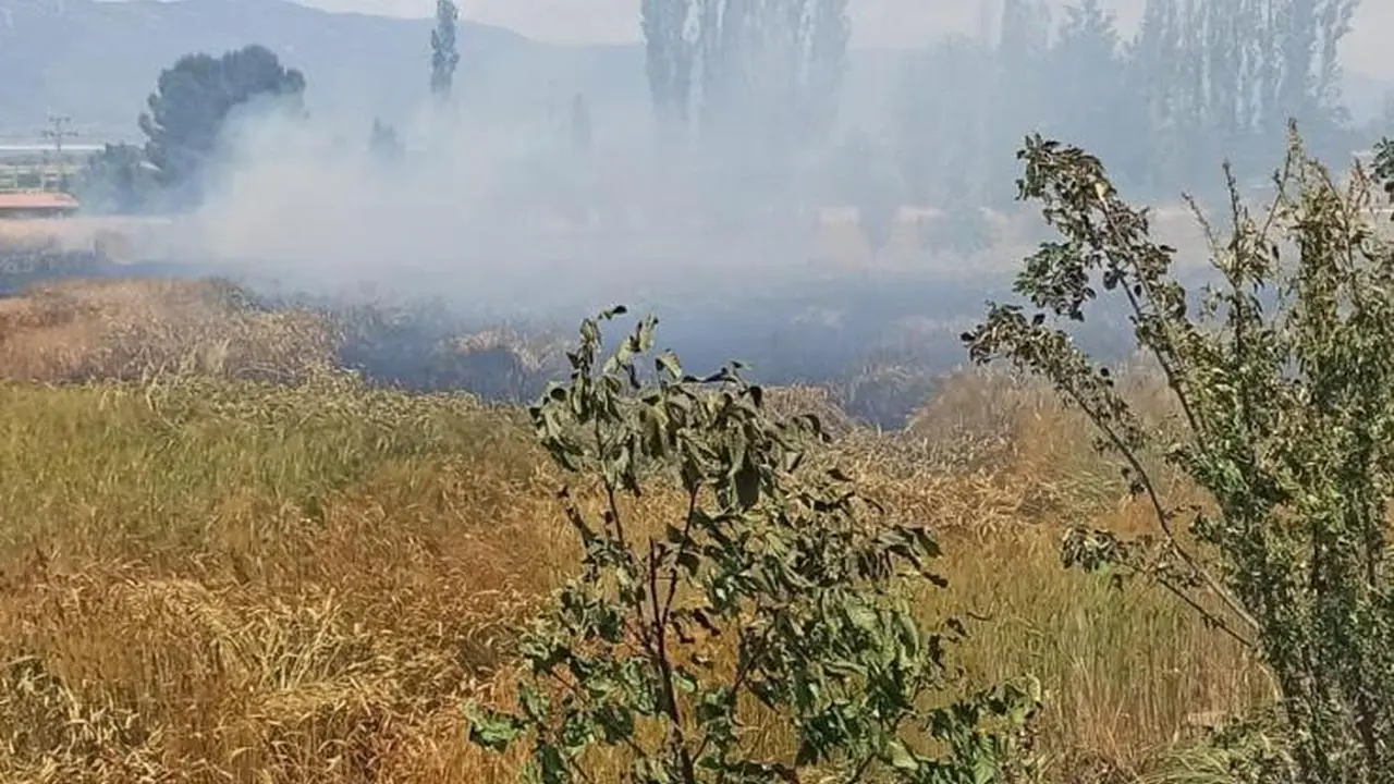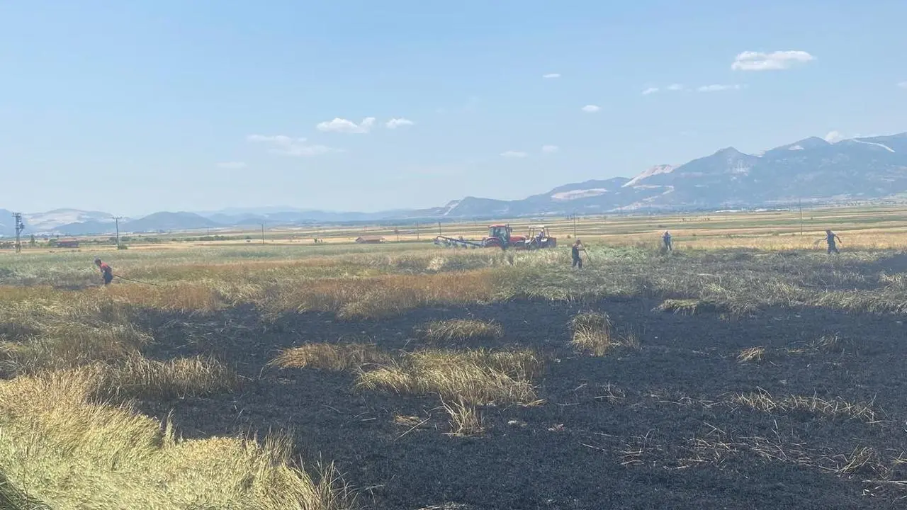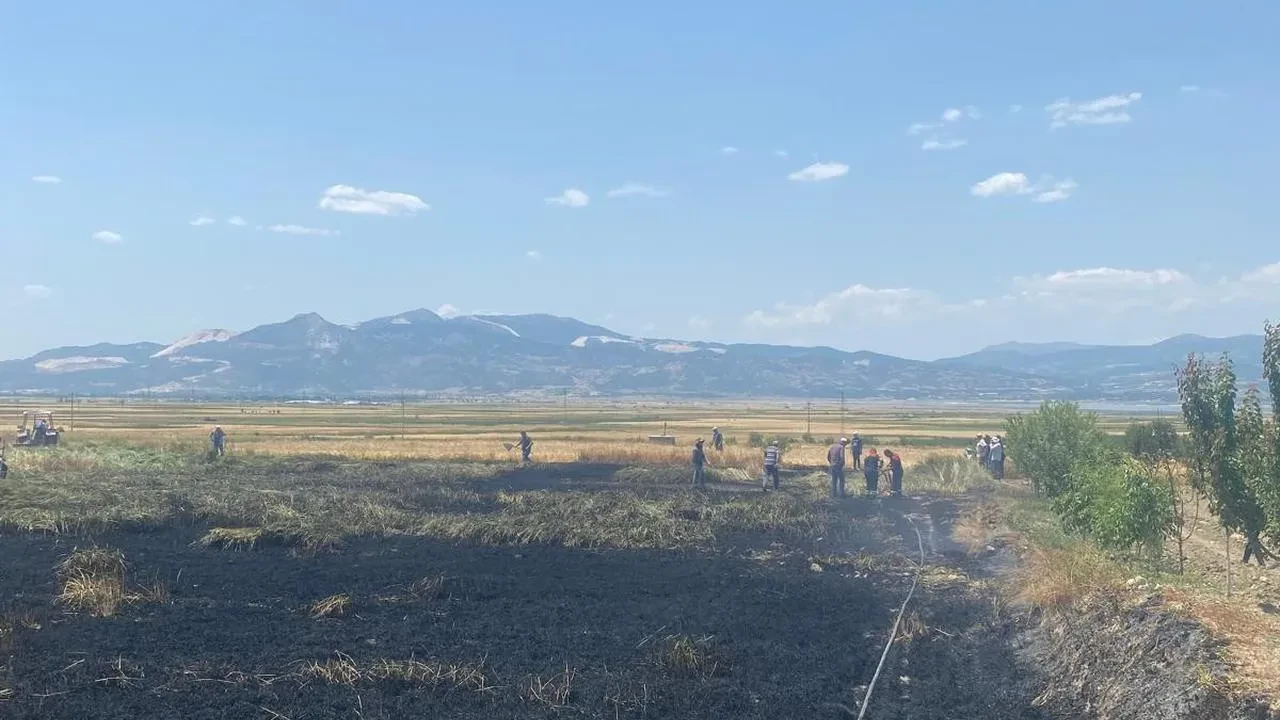 Burdur'un Akyaka köyündeki buğday tarlasında çıkan yangın sonucu 3 dönüm ekili alan zarar gördü.