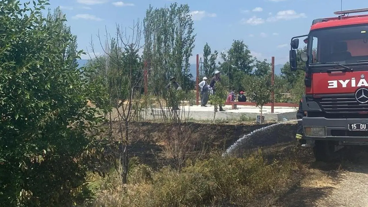 Çevredeki vatandaşlar durumu hemen 112'ye bildirdi. Köylüler traktörlerle arazinin etrafını sürerek yangının yayılmasını engellemeye çalıştı.