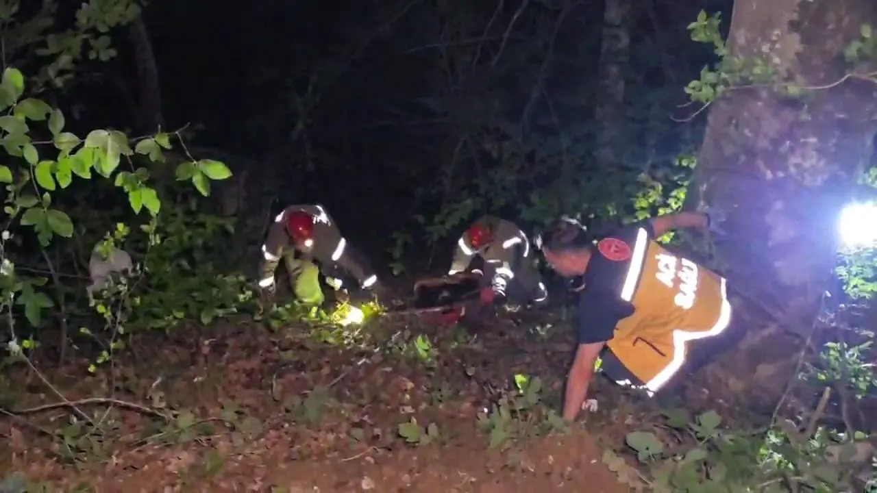 Uçurumdan yuvarlanan araç bir ağaca çarparak durabildi. Sağlık, jandarma ve itfaiye ekipleri hızla olay yerine intikal etti.