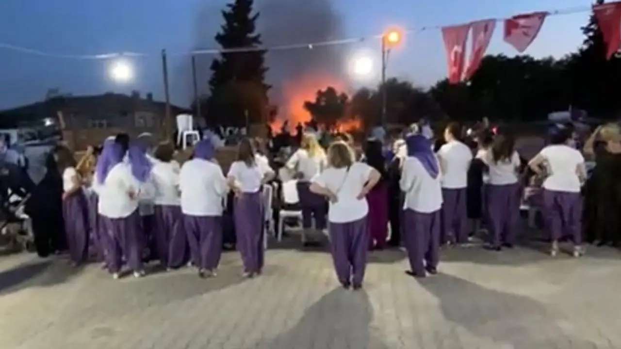 Ovaesemen Köyü'ndeki şalvar gecesinde kadınlar eğlence düzenledi. Havai fişek gösterisi sırasında kuru otlar tutuşmaya başladı.