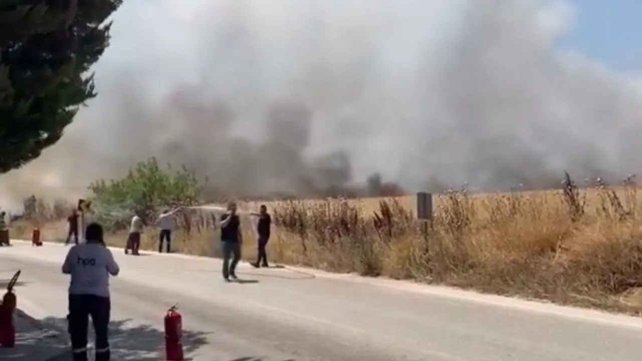 Minareliçavuş OSB Mahallesi'ndeki boş arazide öğle saatlerinde yangın başladı. Kuru otların tutuşmasıyla alevler kısa sürede geniş alana yayıldı.