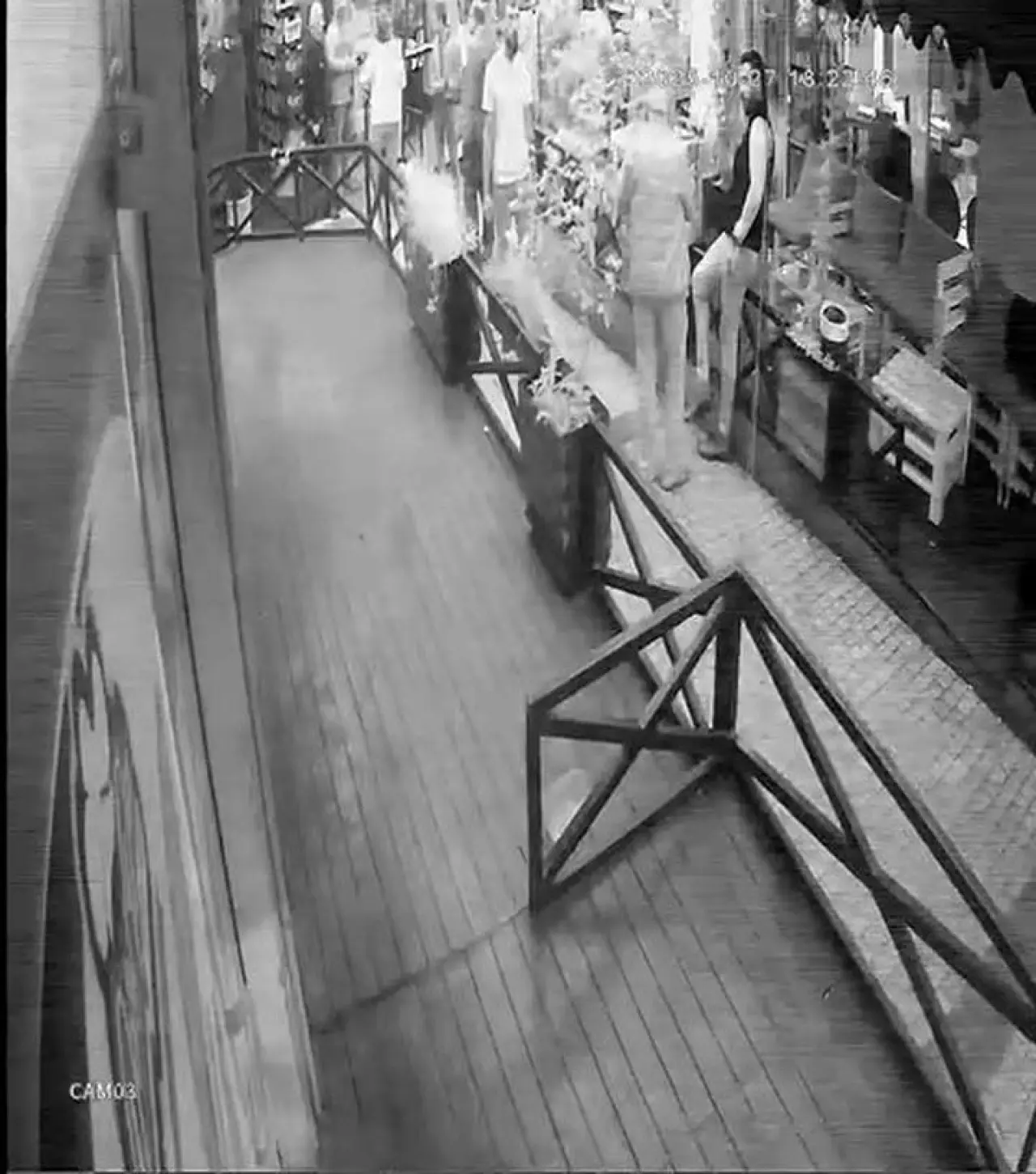 Olayda üç kişi yaralanırken, saldırgan olay yerinden hızla kaçtı. Güvenlik kameraları kargaşa anını kaydetti.
