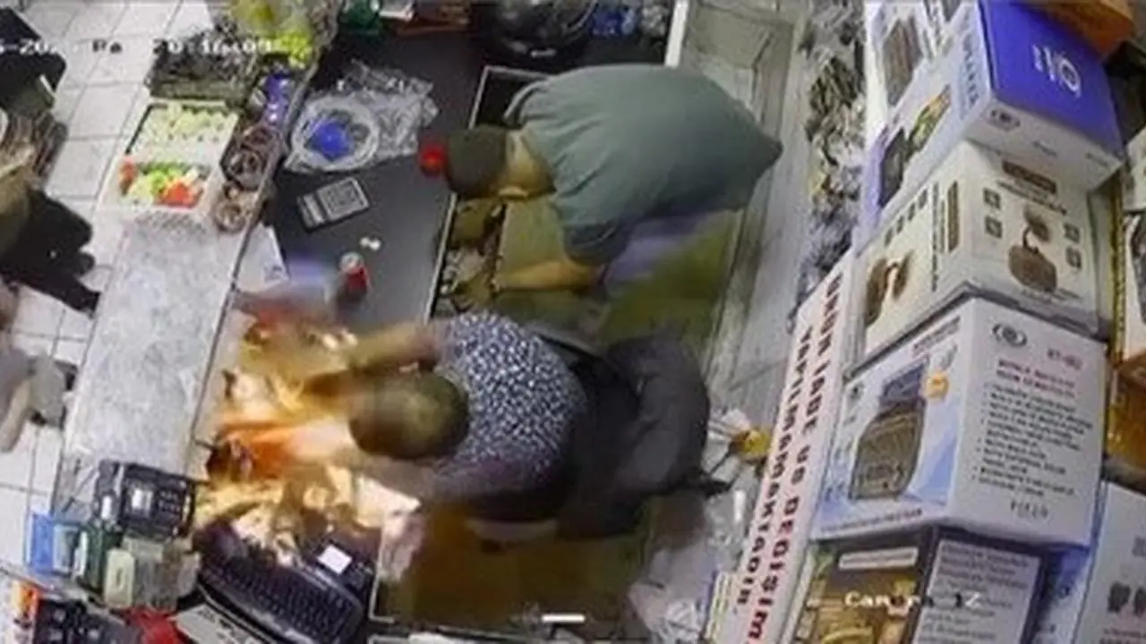 İşyerinde yaşanan tehlikeli anlar güvenlik kamerasına yansıdı. Diğer çalışanlar da kısa süreli şok yaşadı.