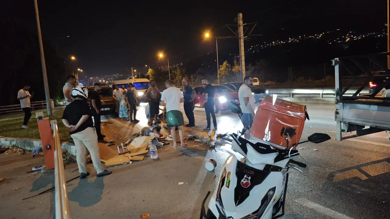 Sürücü direksiyon hakimiyetini kaybederek elektrikli motosiklete çarptı. Çarpmanın etkisiyle motosiklet üzerindeki üç kişi savruldu.