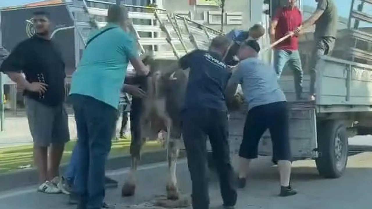 Kaçan büyükbaş hayvanlar caddelerde trafiği olumsuz etkiledi. Sürücüler ve yayalar güvenlik için tedbirli davranmak zorunda kaldı.