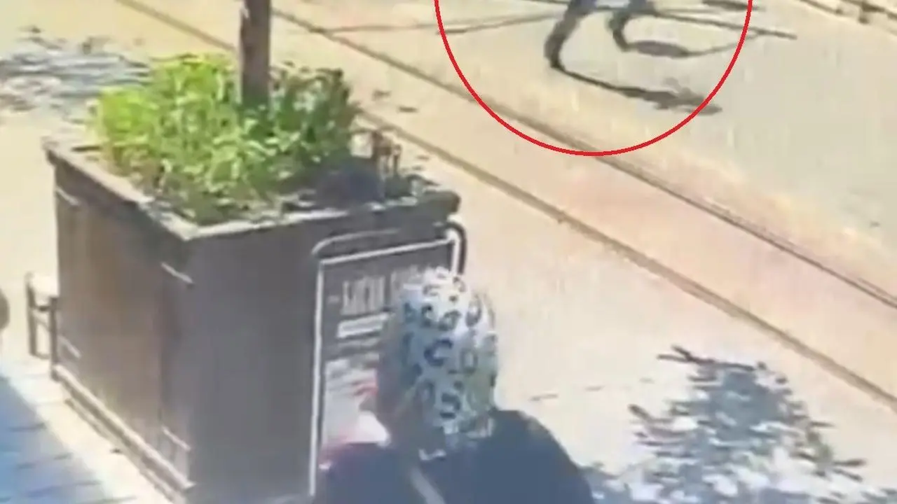 Kalabalık caddelerde yaşanan takip güvenlik kameralarına yansıdı. Yaklaşık 1 kilometre süren kovalamacanın ardından şüpheli yakalandı.