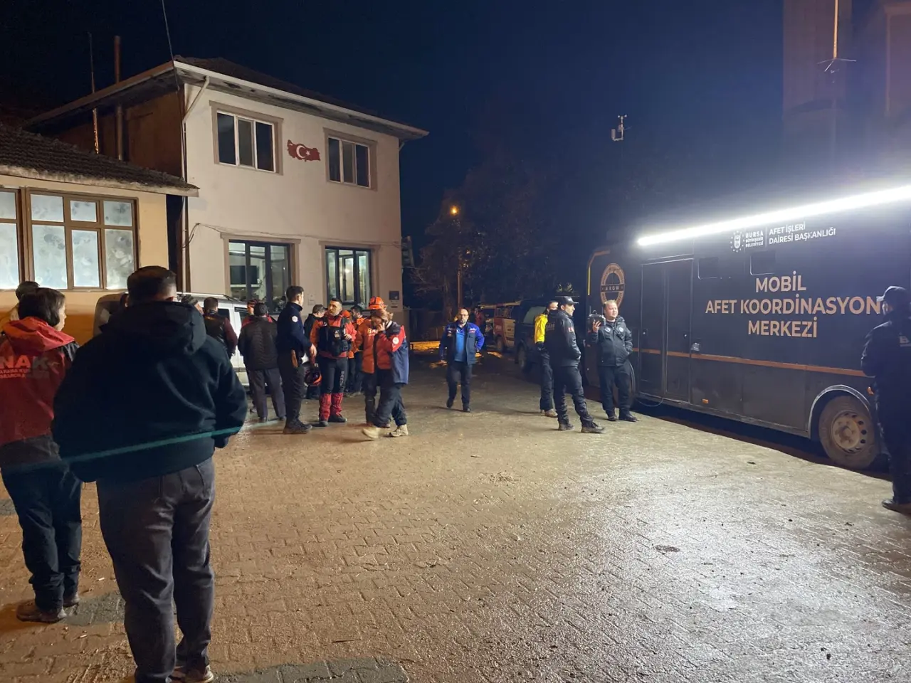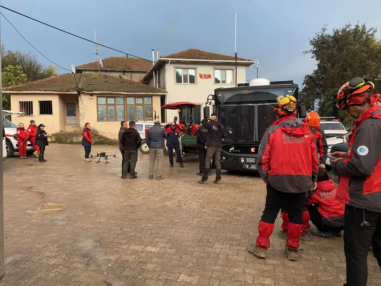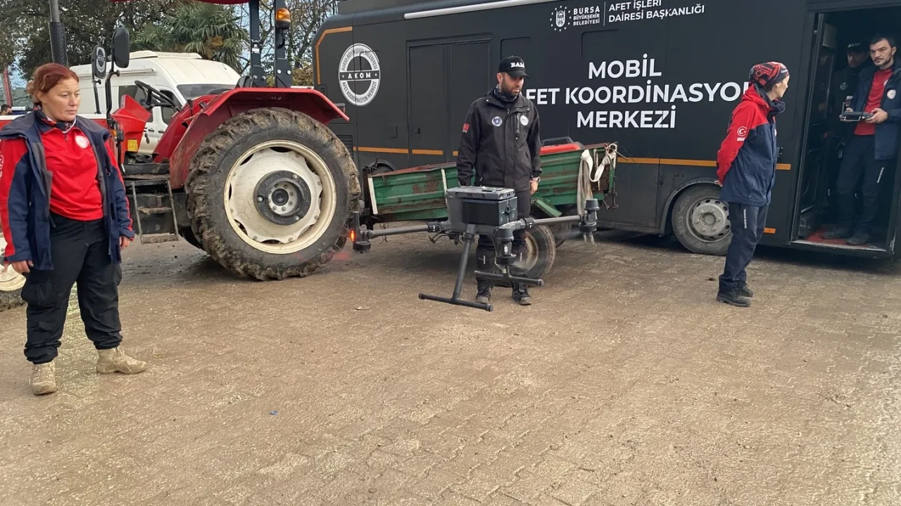 Afet Koordinasyon Merkezi, Mudanya 911 Arama Kurtarma ve MAK ekipleri bölgede koordineli çalışıyor. Drone'lar termal kameralarla zorlu araziyi tarıyor.