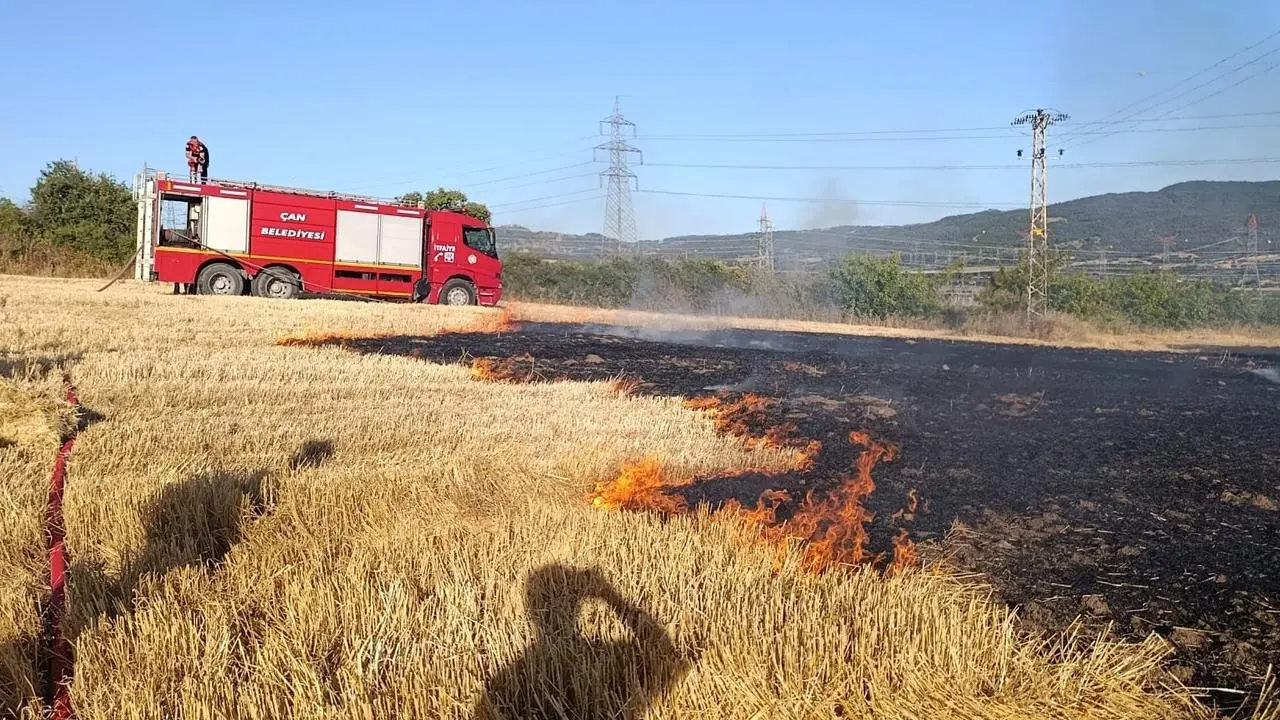 Çanakkale'nin Çan ilçesinde çıkan anız yangını, ekiplerin hızlı müdahalesiyle kısa sürede kontrol altına alındı.