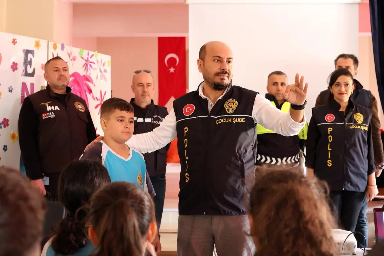 Şemsettin Fatma Çamoğlu Ortaokulu'nda düzenlenen etkinlikte uzman polisler öğrencilerle buluştu. Çocuklar, zorbalık türleri ve siber güvenlik konularında bilinçlendirildi.