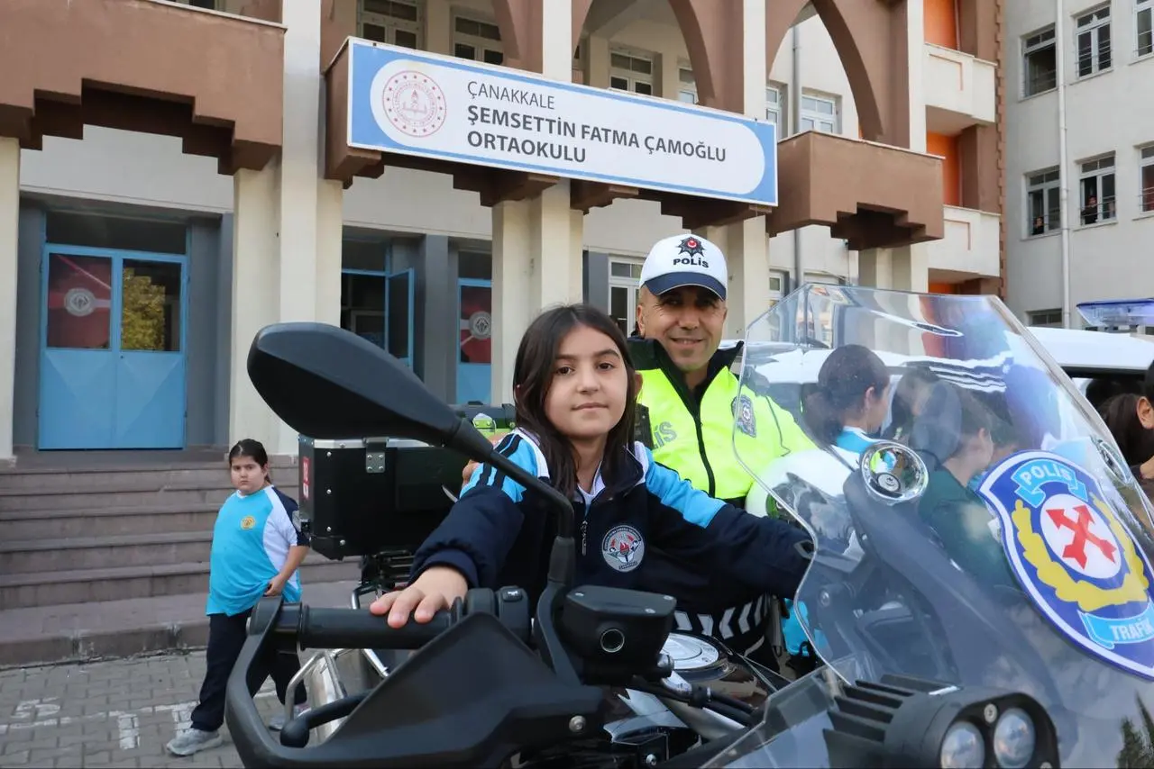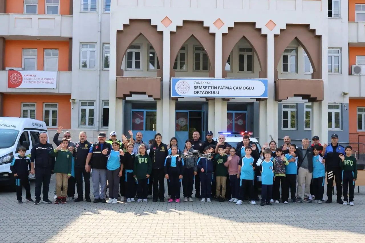 Çanakkale'de emniyet ekipleri, ortaokul öğrencilerine akran zorbalığı ve siber suçlar hakkında bilgilendirme yaptı.