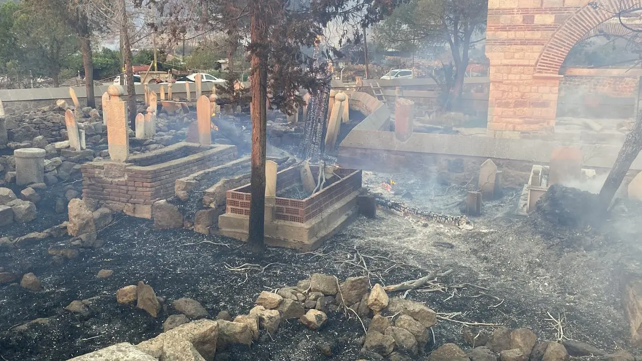 Çanakkale'nin Ayvacık ilçesinde çıkan orman yangını, tarihi mezarlara ve çok sayıda yapıya zarar verdi.
