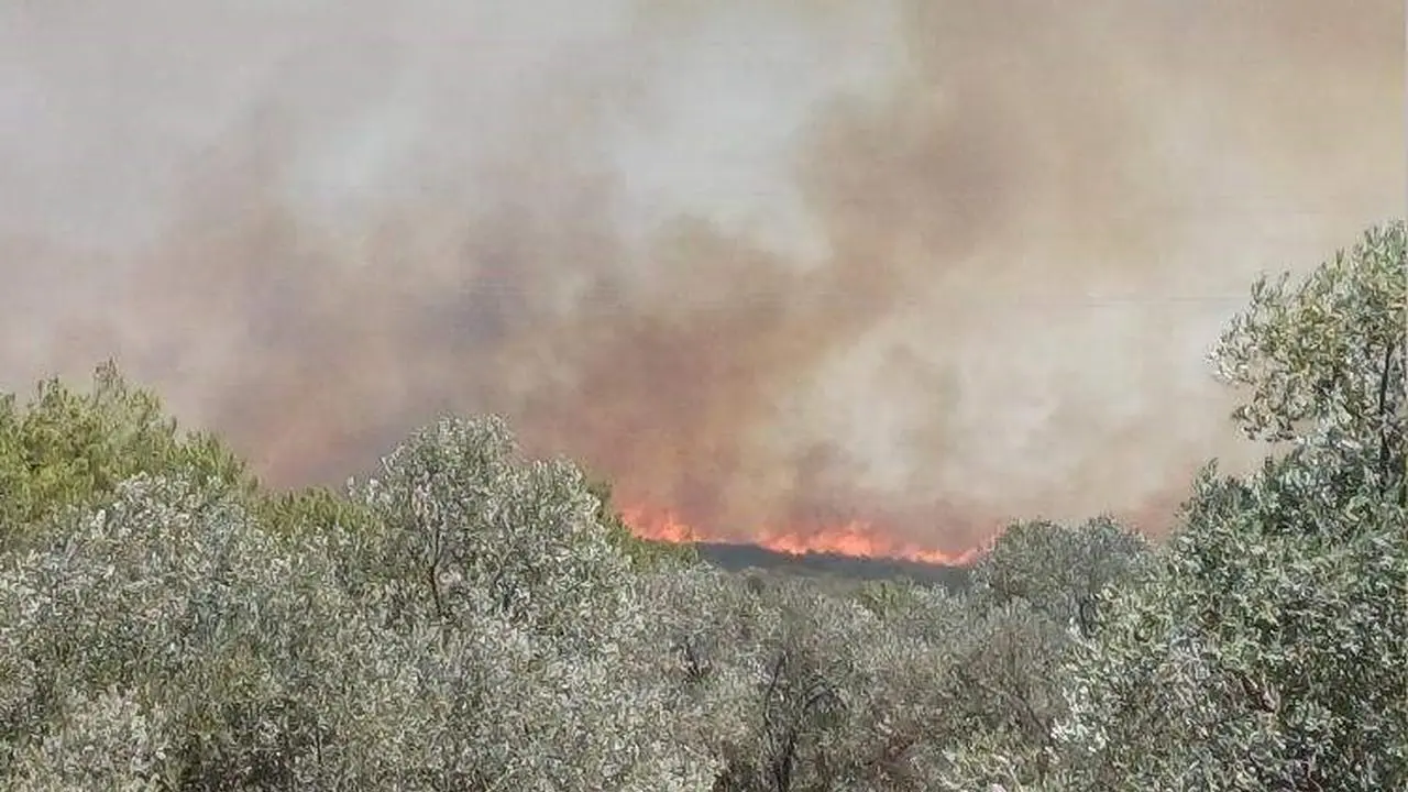 Yangının yayıldığı alanda çok sayıda zeytin ağacı bulunuyor. Yükselen dumanlar kilometrelerce uzaktan görülebiliyor.