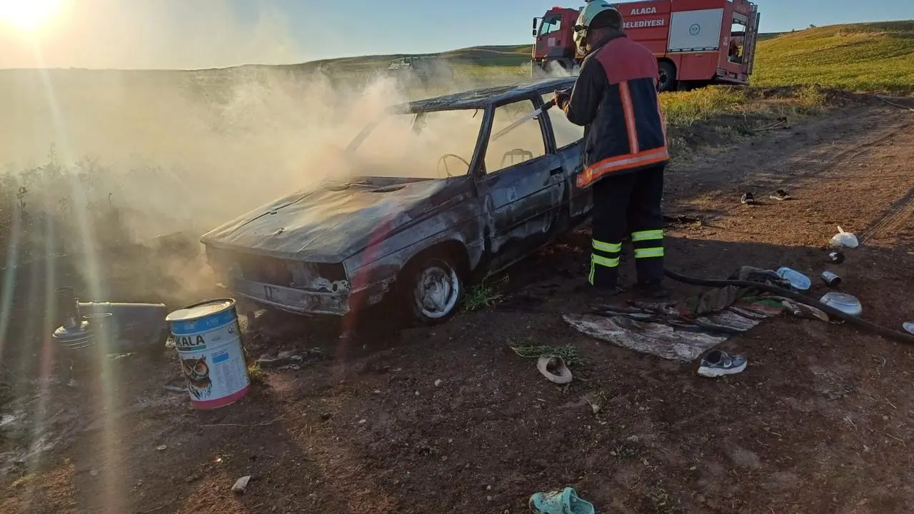Çorum'un Alaca ilçesinde park halindeki otomobil yanarak büyük çapta maddi hasara yol açtı.