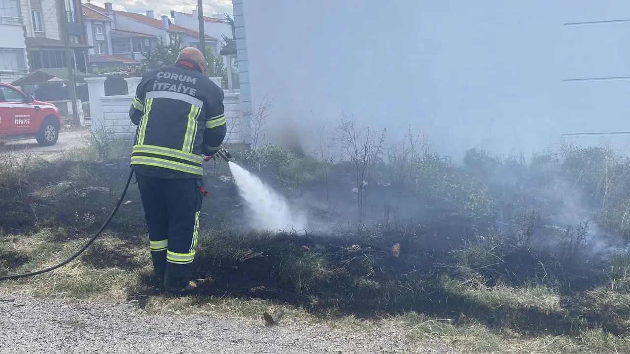 Çorum'un Binevler Mahallesi'nde otluk alanda başlayan yangın, itfaiye ekiplerinin hızlı müdahalesiyle kontrol altına alındı.