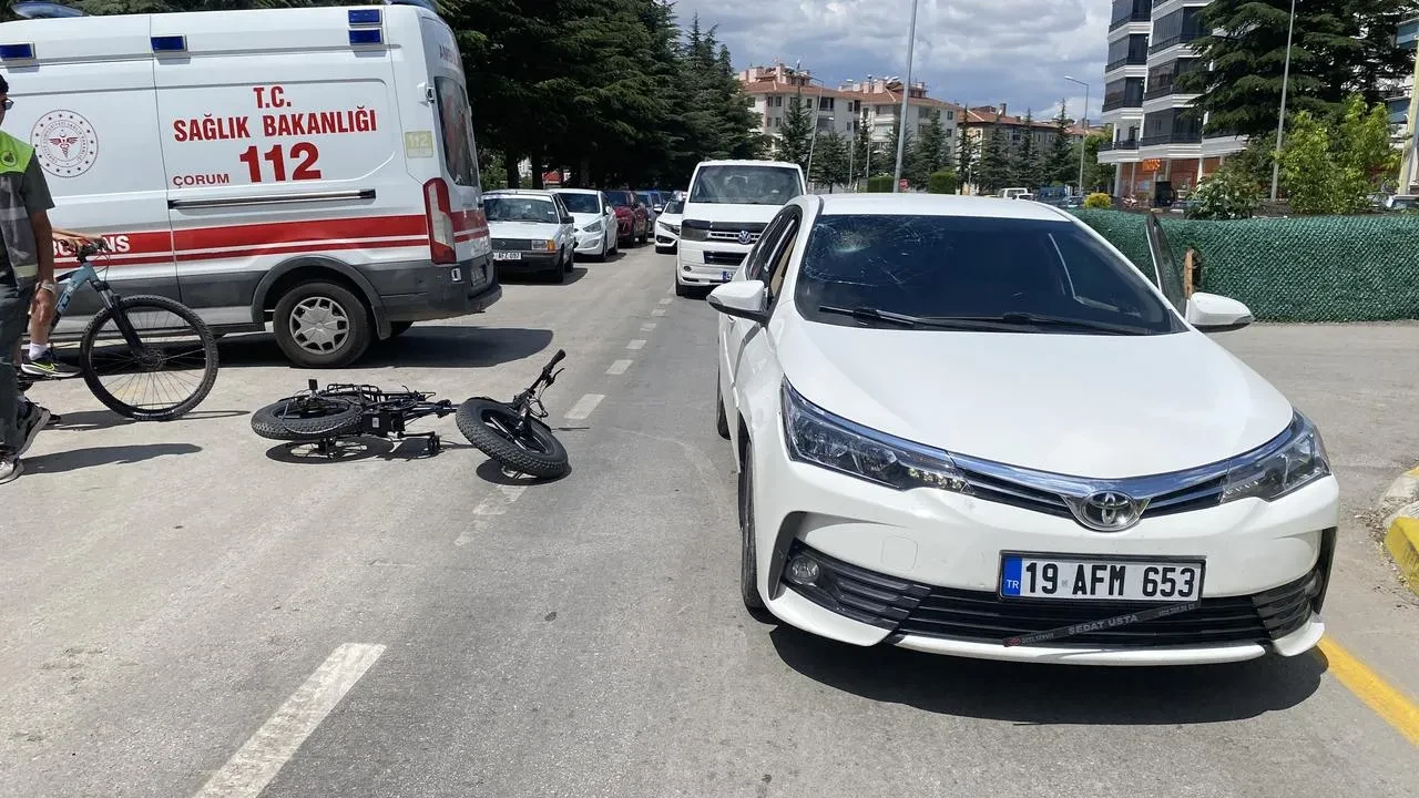 Çorum'da meydana gelen trafik kazasında otomobil ile elektrikli bisikletin çarpışması sonucu bir çocuk yaralandı.