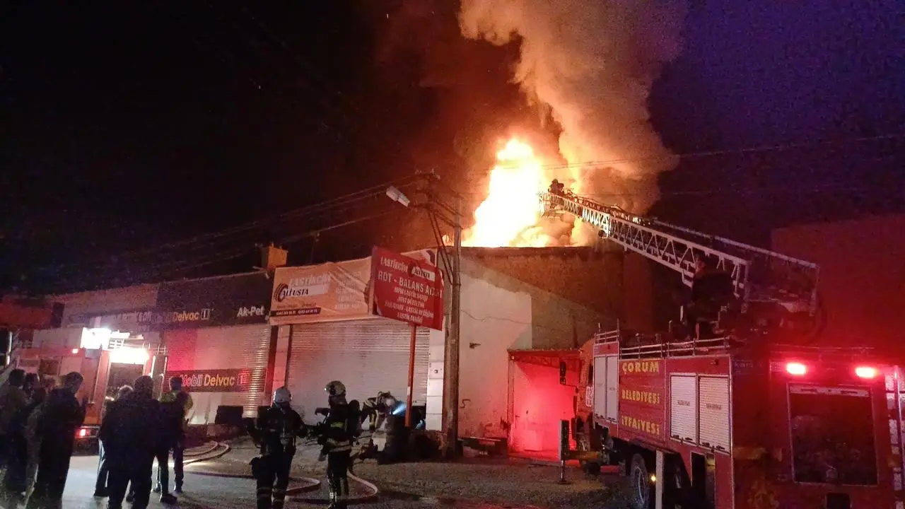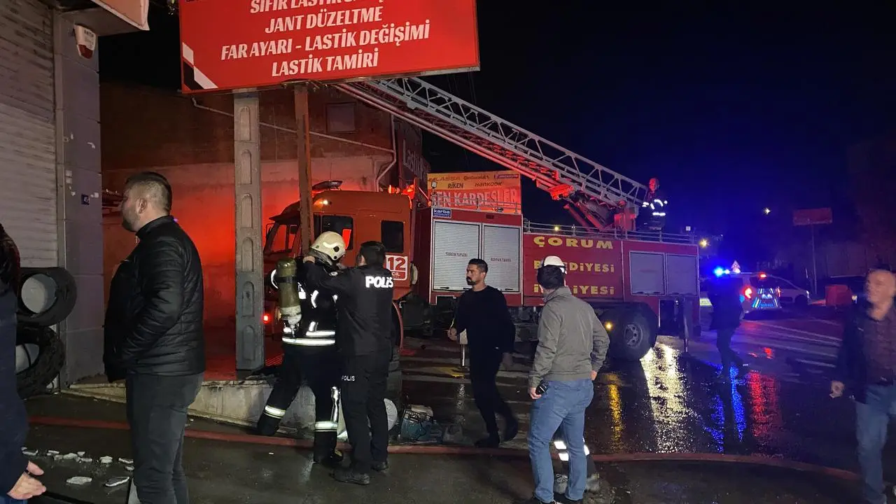 Çorum'da bir lastik tamirhanesinde çıkan yangın itfaiye ekiplerinin müdahalesiyle kontrol altına alındı.