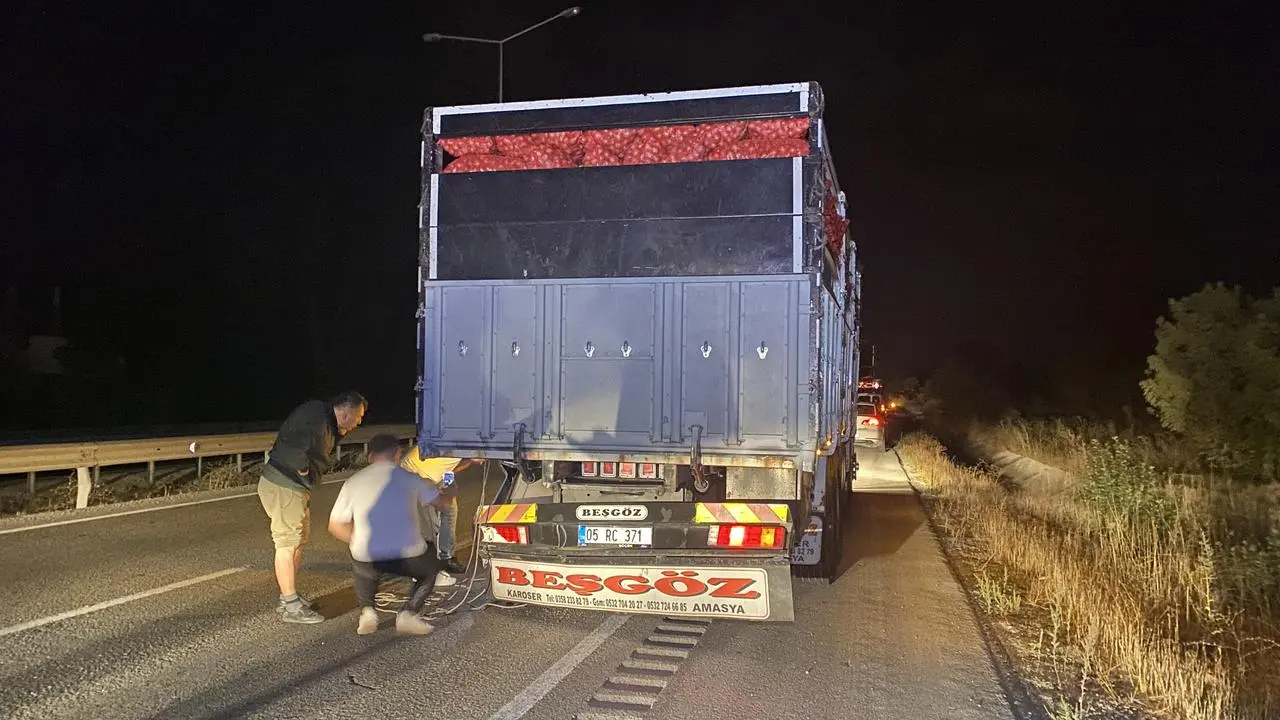 Çorum'da otomobil kamyona arkadan çarptı, sürücü şans eseri yara almadan kazadan kurtuldu.