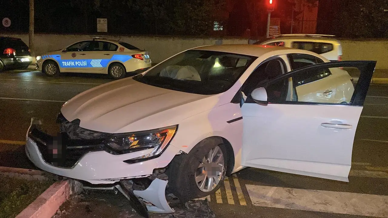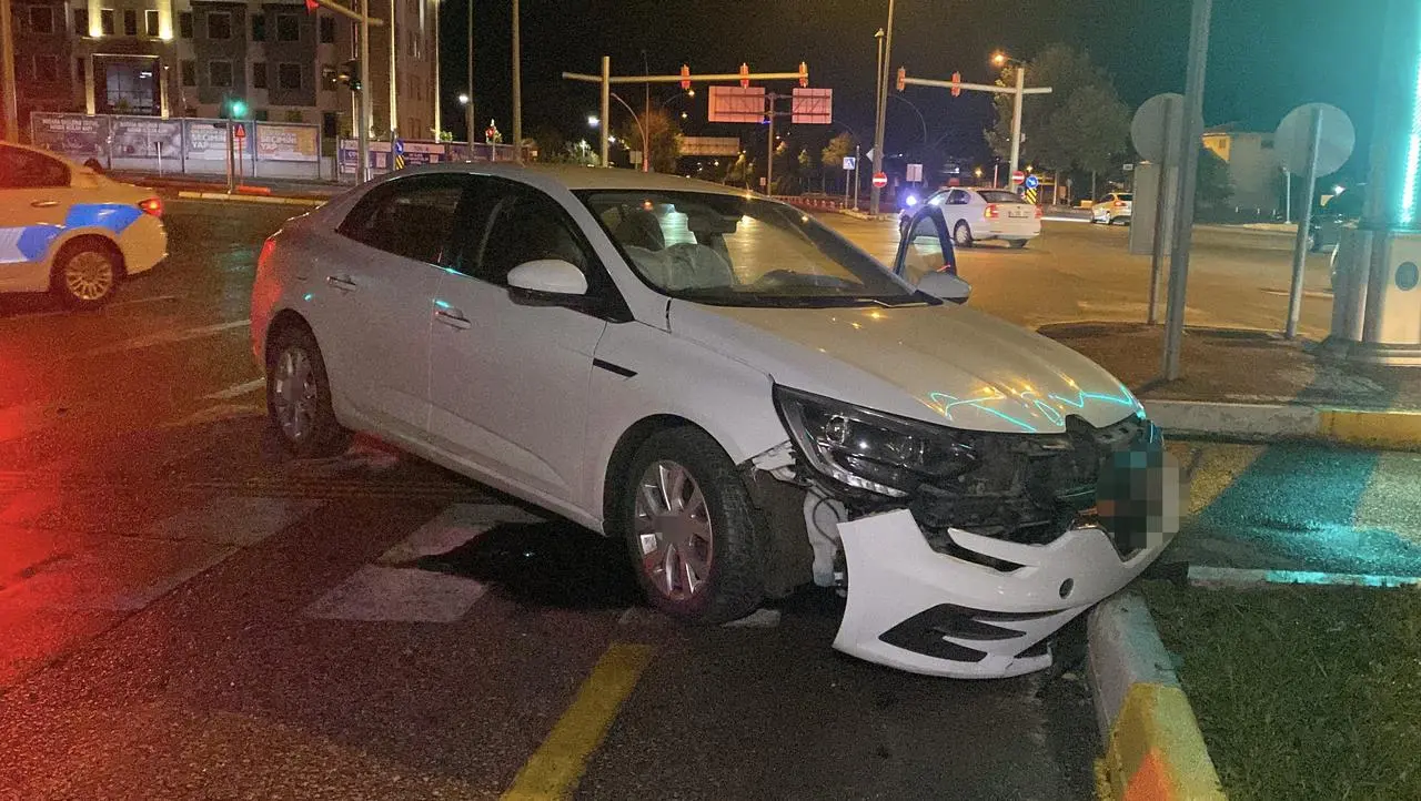 Refüjdeki bordür taşlarına çarpmanın etkisiyle araç hasar gördü. Kazanın nedeni araştırılıyor.