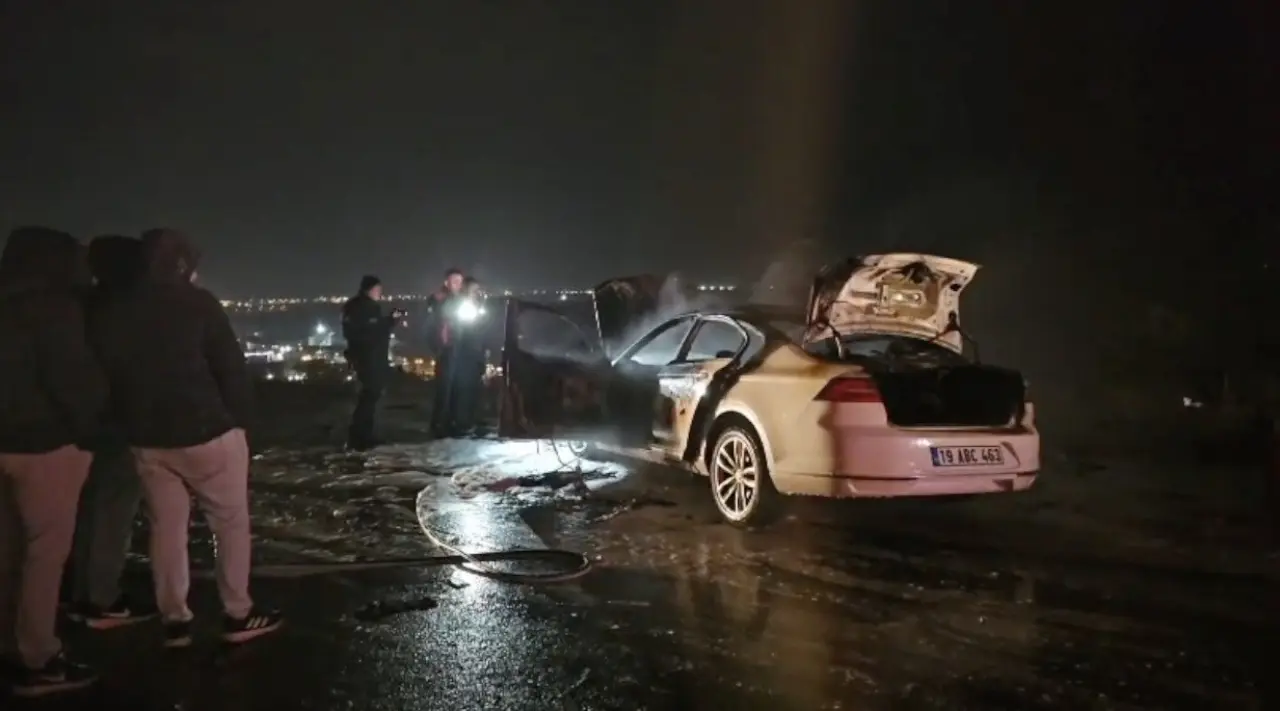 Çorum'da park halindeki araç alev aldı, itfaiye müdahalesiyle yangın kontrol altına alındı.