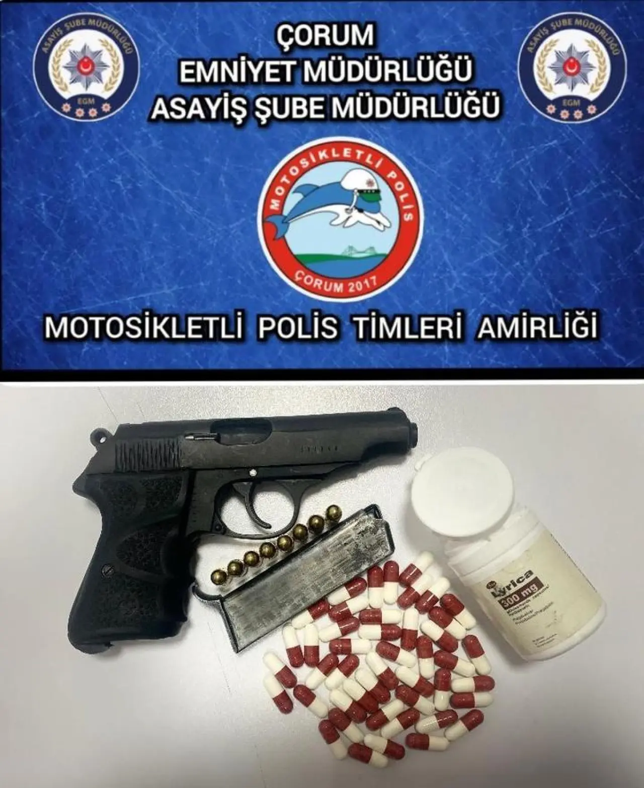 Çorum'da polis ekiplerinin denetimleri sonucu aranan 6 şüpheli yakalandı ve çeşitli materyaller ele geçirildi.