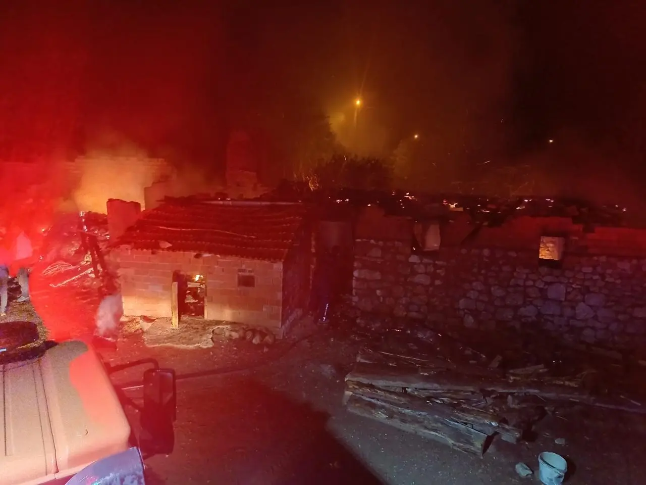 Çorum'un Alaca ilçesinde çıkan yangında ahır ve ardiye kullanılamaz hale geldi, tarım ürünleri de zarar gördü.