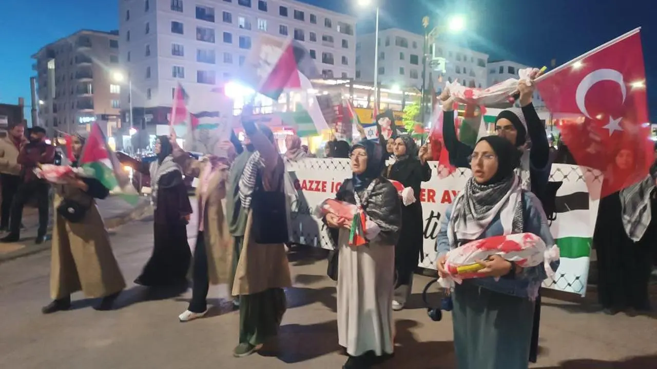 Sivas'ta Cumhuriyet Üniversitesi öğrencileri, İsrail'in Gazze'de sürdürdüğü saldırıları protesto etmek için anlamlı bir yürüyüş düzenledi. Faldum Köprüsü'nden başlayan protesto gösterisinde öğrenciler, Gazze'de hayatını kaybeden bebekleri temsil eden kanlı oyuncak bebeklerle yürüdü. Göstericiler, ellerinde Filistin bayrakları ve pankartlarla İsrail'i kınadı.