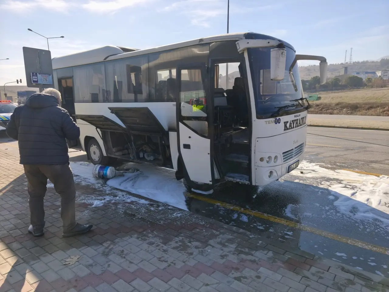 Olay, Merkezefendi ilçesi Bozburun Mahallesi'nde meydana geldi. Servis sürücüsü, motor kısmından duman çıktığını fark ederek hemen durdu.