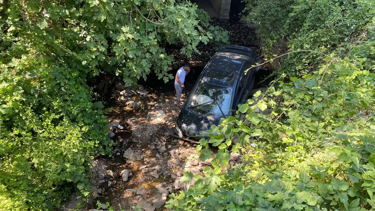 Kocaeli’nin Derince ilçesinde bir otomobil, park etmeye çalışırken yaklaşık 7 metre yükseklikten kanala düştü.