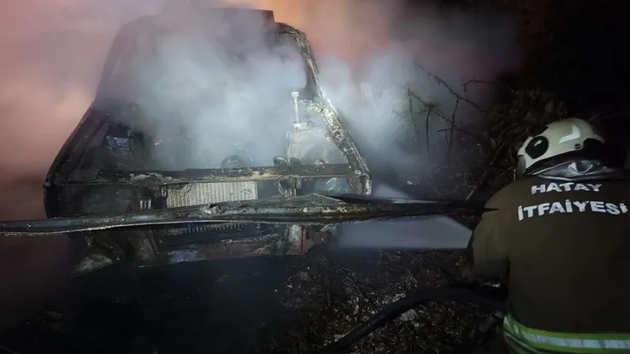 Hatay'ın Dörtyol ilçesinde seyir halindeki bir otomobil alevlere teslim oldu ve kullanılamaz hale geldi.