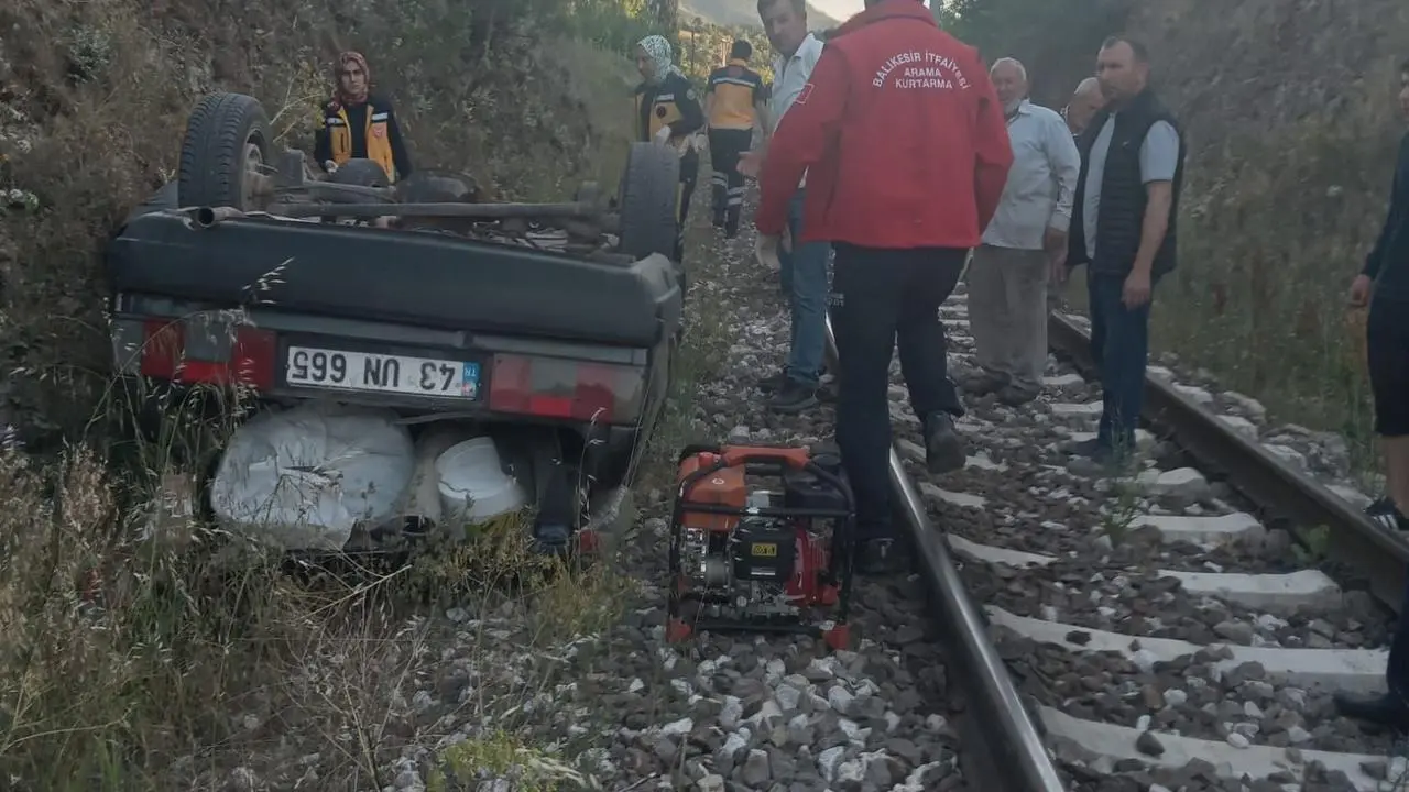 Mehmet B.'nin kullandığı 43 UN 665 plakalı otomobil kontrolden çıktı. Araç şarampole yuvarlanarak tren yoluna düştü.